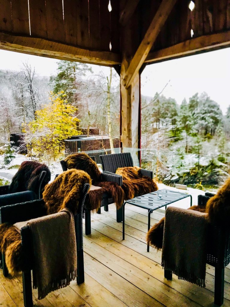 Où tout, depuis l’utilisation du bois, la présence de poutres apparentes, l’installation de fauteuils recouverts de peaux de bêtes, la mise à disposition de livres évoquant la Norvège et la chaleur du feu crépitant, dès l’automne, dans l’âtre de la cheminée, invite à la déconnexion.