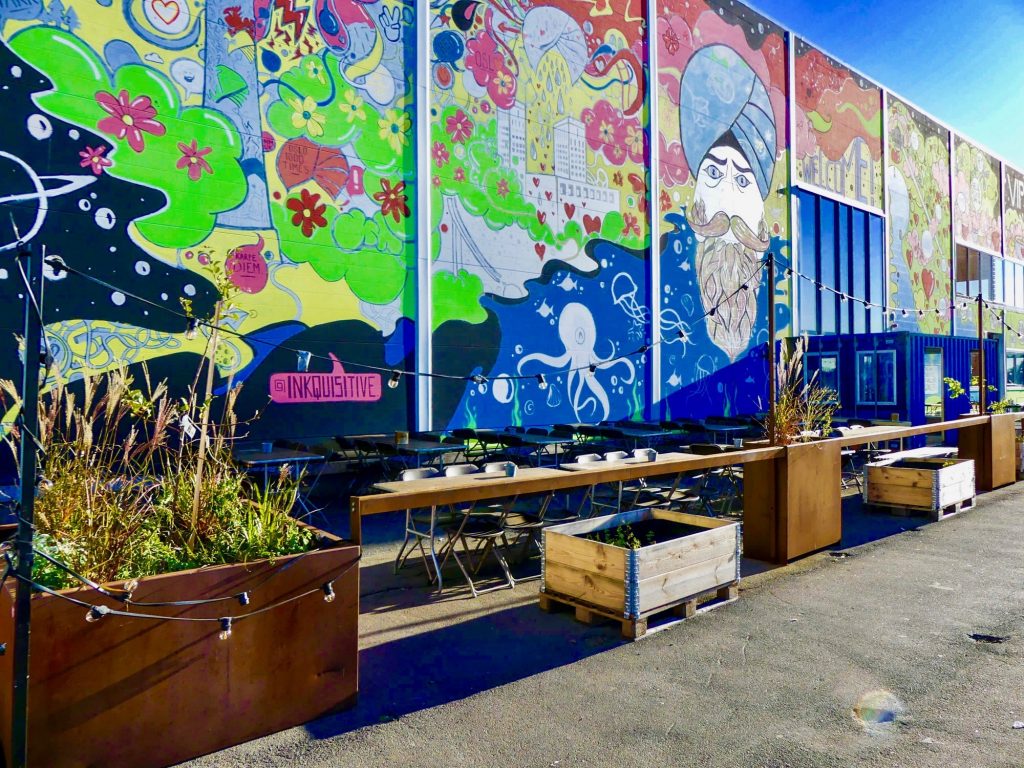 Un univers particulièrement coloré qui s’affiche également, non loin de la galerie précitée, sur les façades de Skur 13,  ancien entrepôt accueillant dorénavant un skate park .