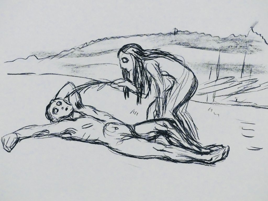 (écho à la Mort de Marat de Jacques-Louis David et aussi d’Edvard Munch)