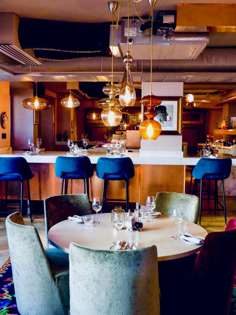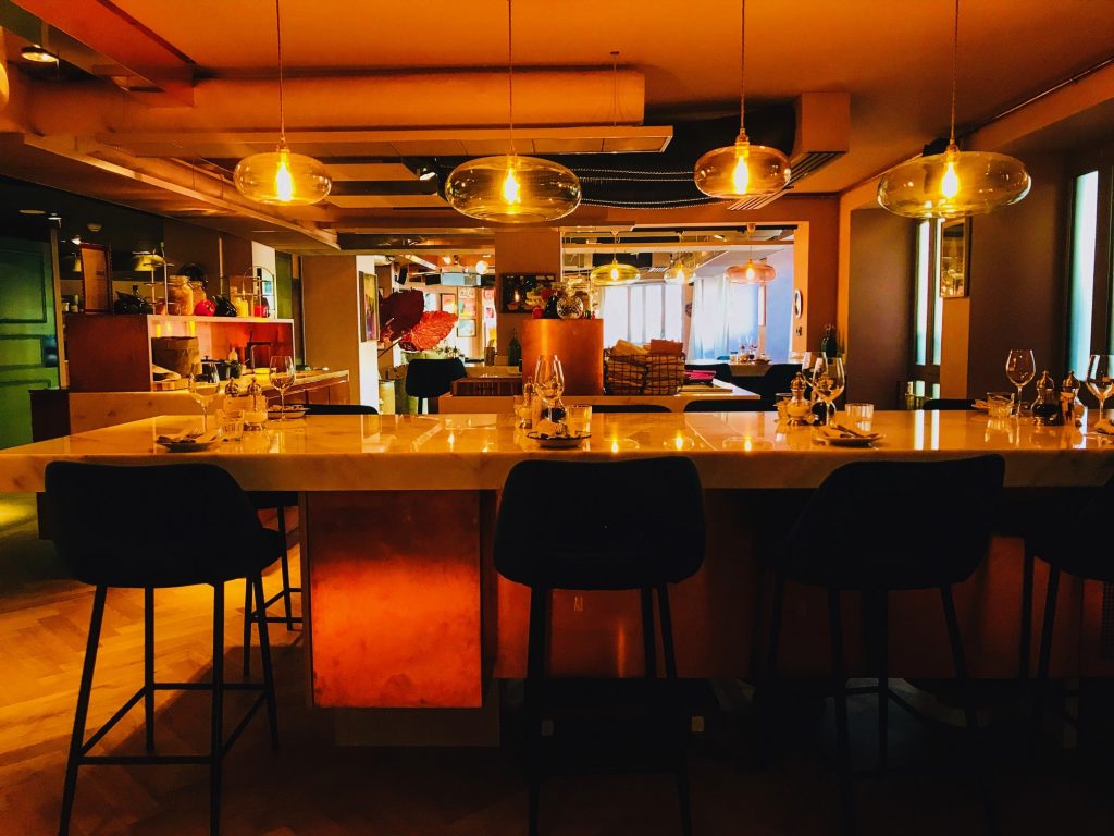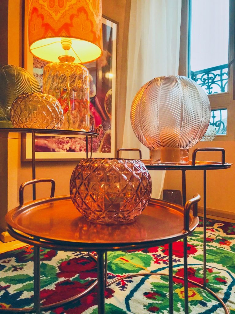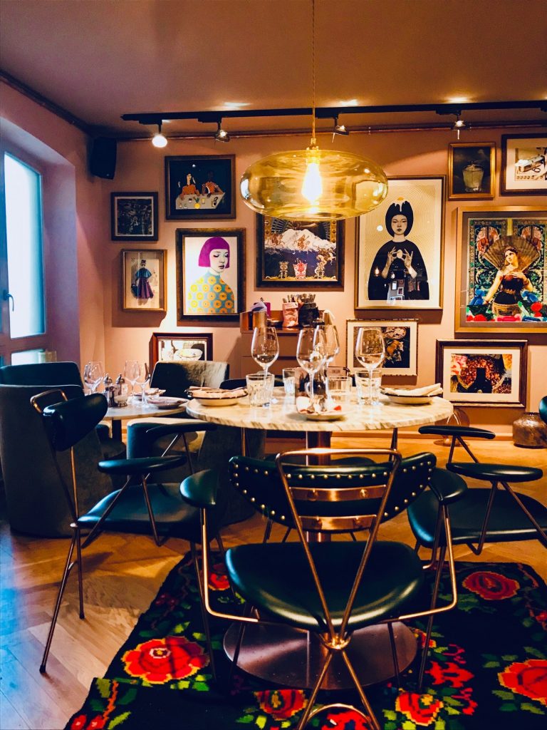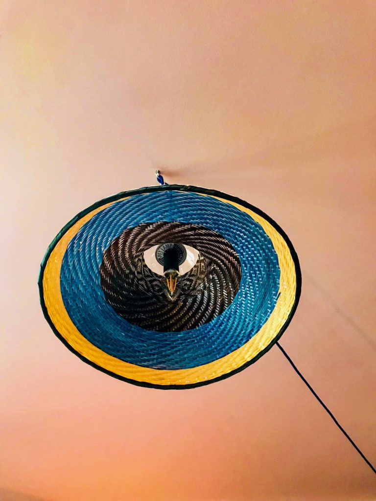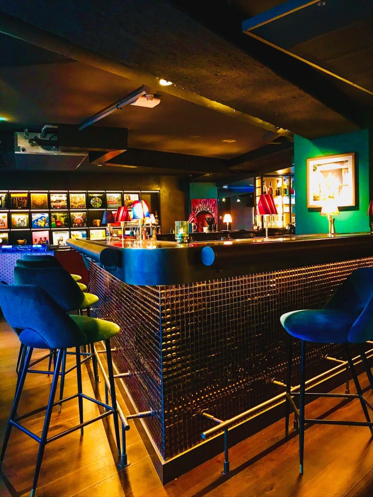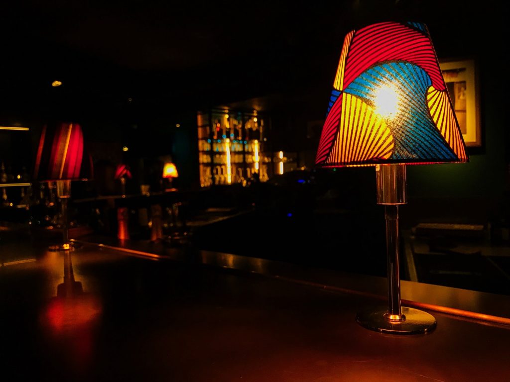 et les inédits abat-jours recouverts de wax  grâce auxquels le bar acquiert un cachet unique,
