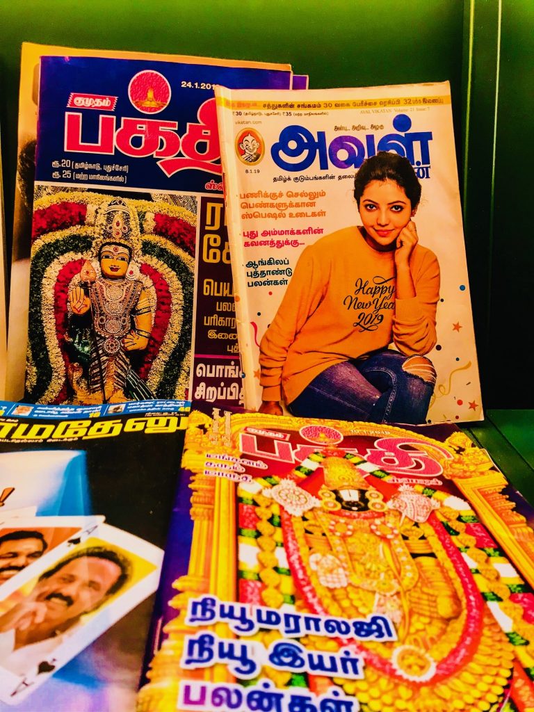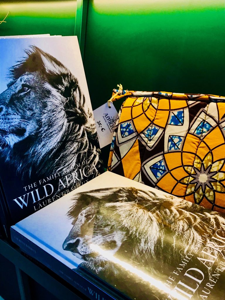 Ainsi, dans une mise en scène qui renvoie aux historiques kiosques à journaux parisiens, ouvrages, généraux ou plus spécialisés, magazines, objets du quotidien, dvds de films Bollywood (cinéma indien tourné en langue Hindi dans les studios de Mumbai) ou Kollywood (cinéma Tamoul tourné en langue tamoule dans les studios de Chennai), cartes postales, accessoires capillaires , bijoux , tote bags et vêtements en wax de créateurs contemporains, tous disponibles à l’achat,