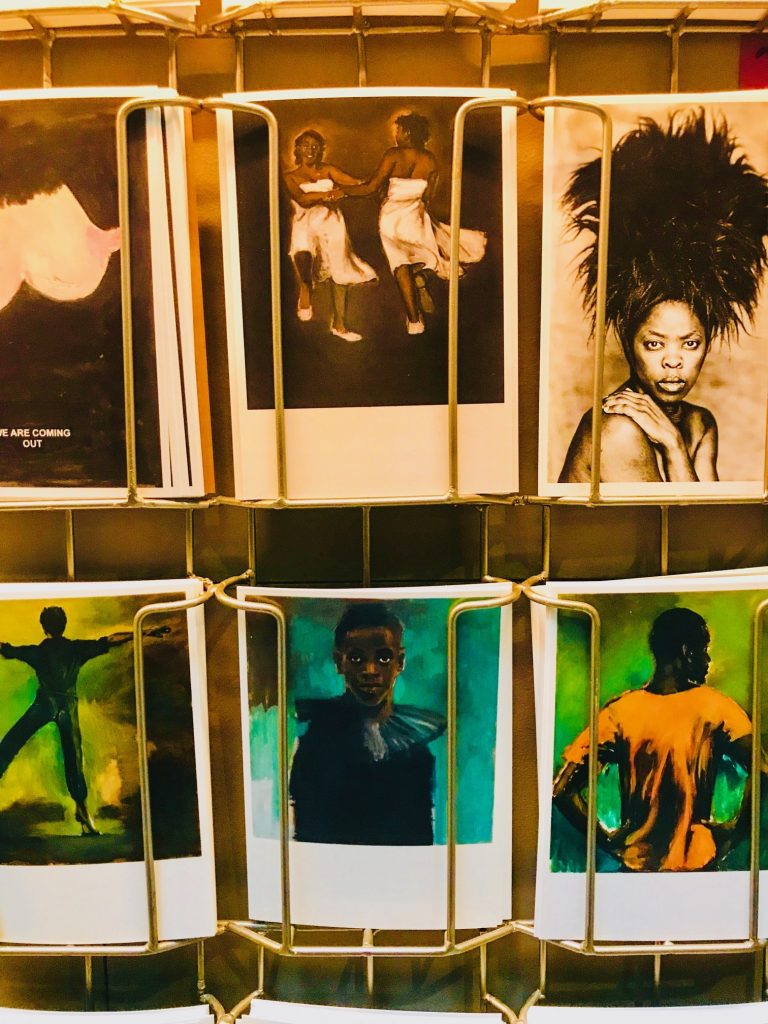cartes postales qui représentent notamment une oeuvre de l’artiste ghanéenne Lynette Yiadom Boakye (en bas à droite), évoquée l’été dernier dans ce billet dédié à Rennes, et un autoportrait de l’artiste sud-africaine Zanele Muholi (en haut à droite) évoquée dans cet article dédié à Cape Town