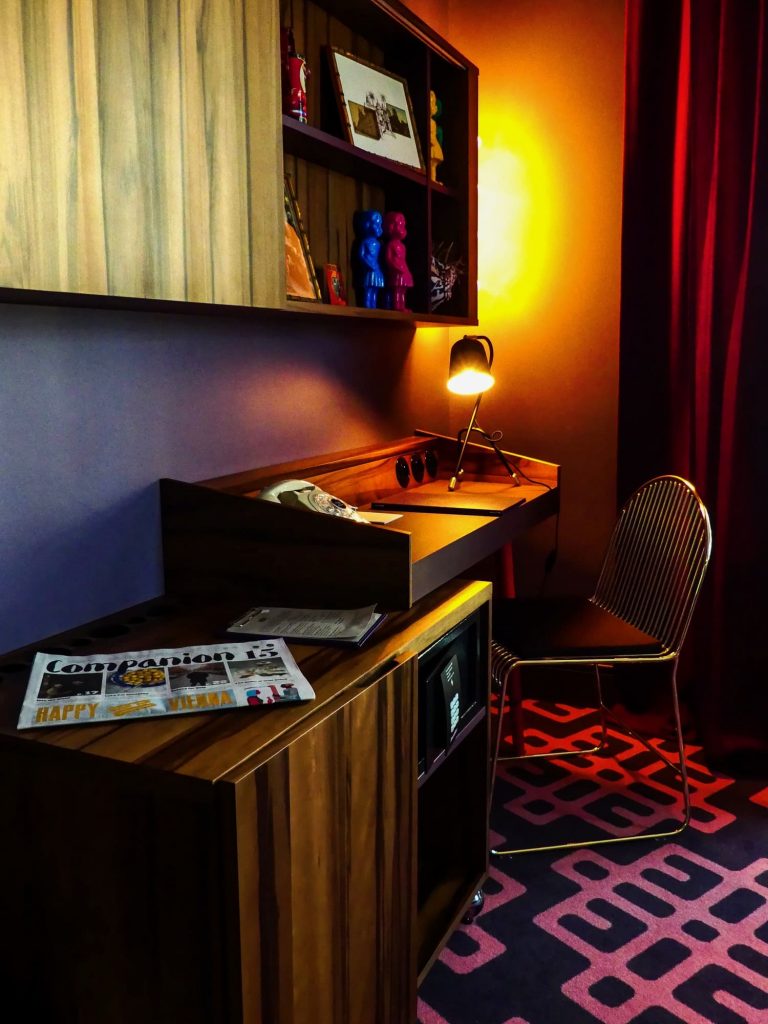 Dès l’atypique lobby, sur lequel deux monumentales portes d’entrée vitrées s’ouvrent , l’ode à la multiculturalité et au street art se manifeste, en effet,  via moult détails,  pensés avec soin par les agences ,en design et conseil artistique, Dreimeta et Visto Images.