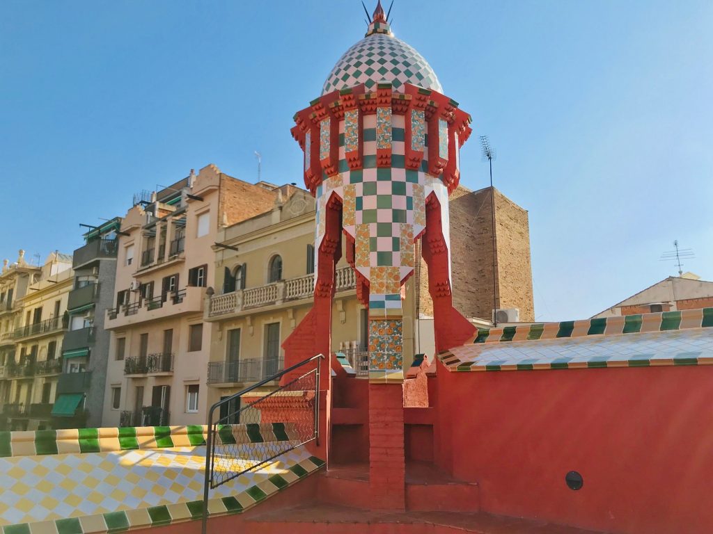 Là où la première inédite réalisation du maître, classée à l’Unesco en 2005 avant d’être, fin 2017, ouverte au public après 3 ans de restaurations, se dresse : l’atypique Casa Vicens.