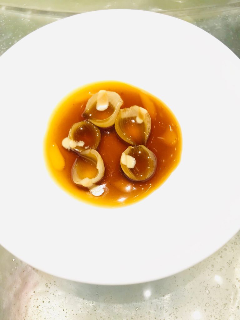 Y débute une inoubliable expérience gastronomique , durant près de 4 heures, au cours de laquelle un menu unique de 40 plats, quasi exclusivement tourné vers les produits de la mer et évoluant au fil des saisons,  vous sera servi.