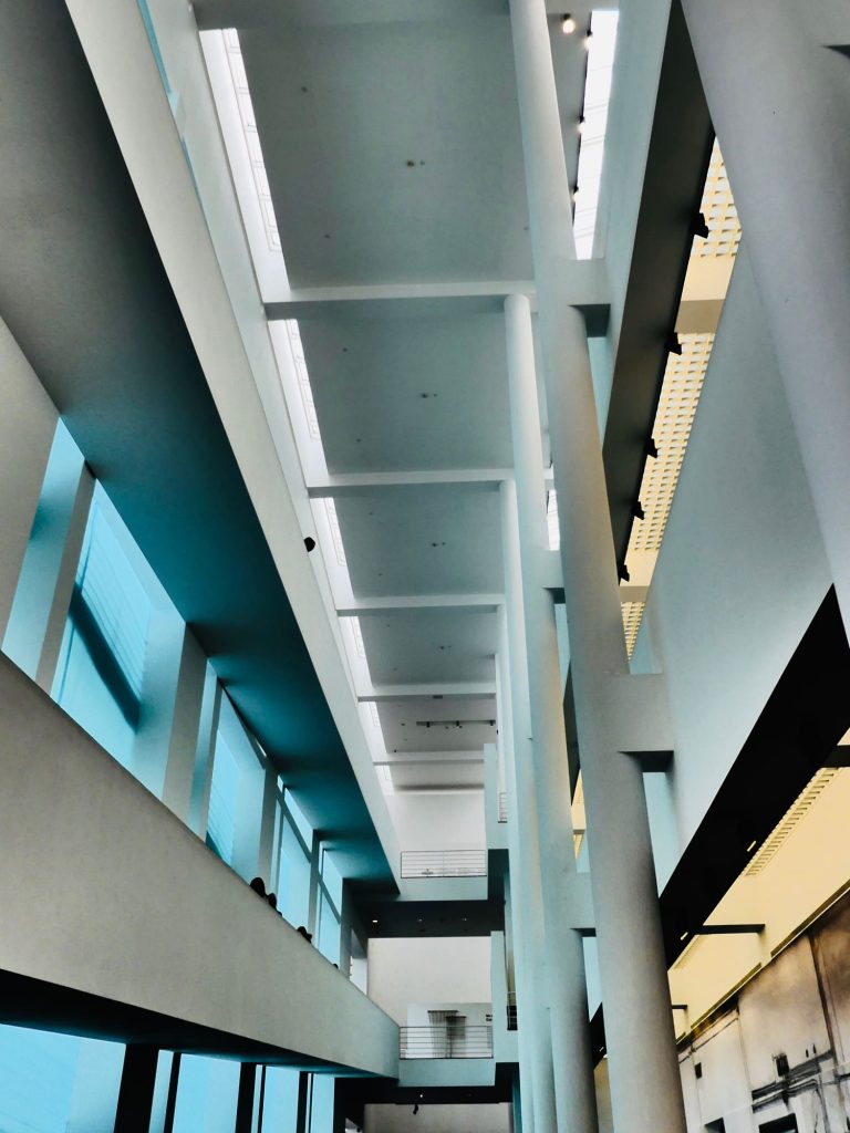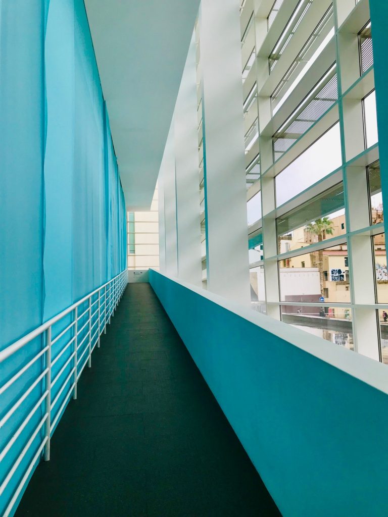 Installé au cÅ“ur du quartier en pleine mutation d’El Raval, le MACBA , m’ayant rappelée le superbe Musée d’Art Moderne André Malraux (MUMA) du Havre, séduit tout d’abord par son architecture moderne, signée Richard Meier :