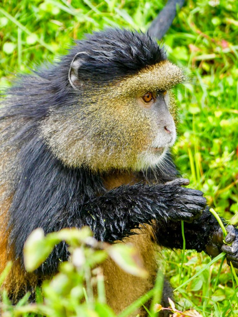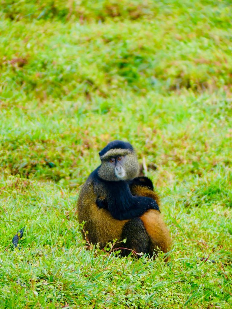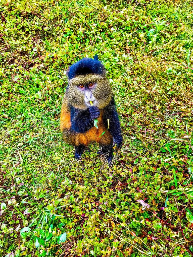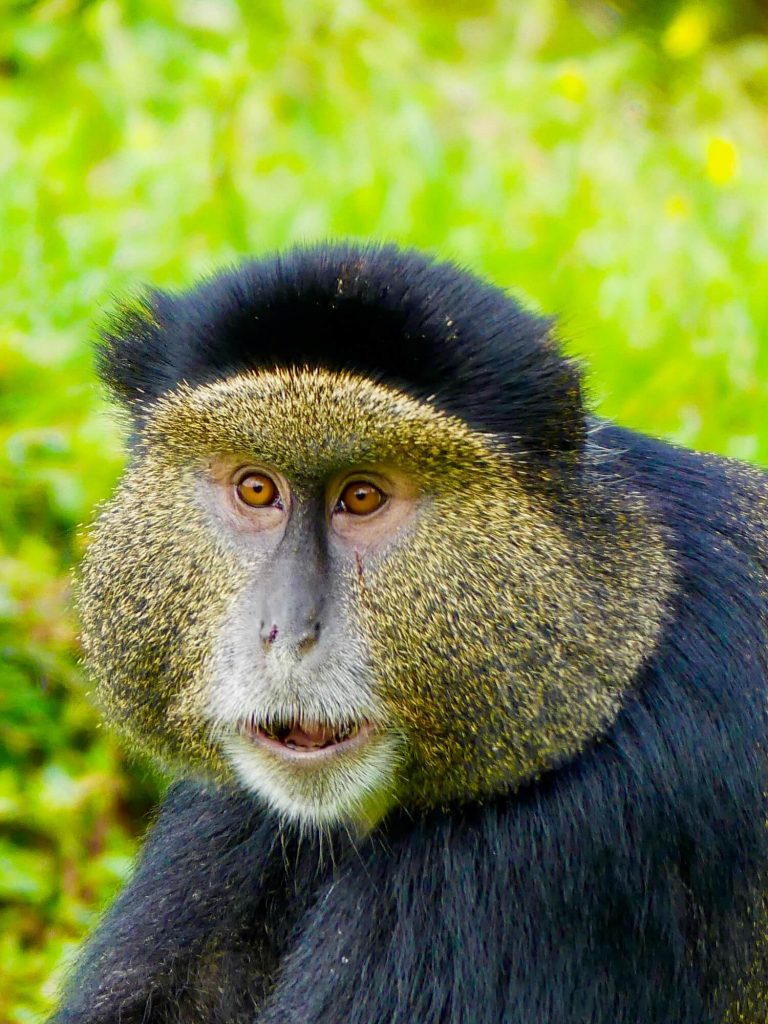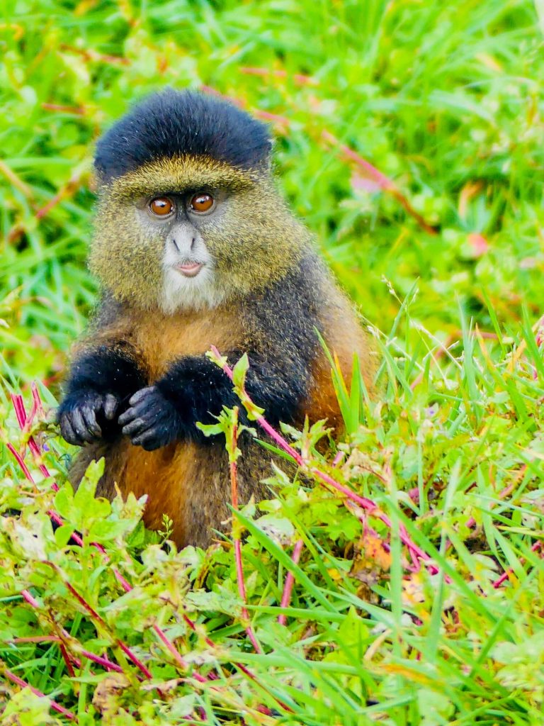Aux côtés des impressionnants gorilles de montagne, le Parc National des Volcans abrite une autre espèce, elle aussi menacée, de petits primates dont la visite m’a laissée un impérissable souvenir : les endémiques Golden Monkeys, reconnaissables à leurs joues et pelage dorés.