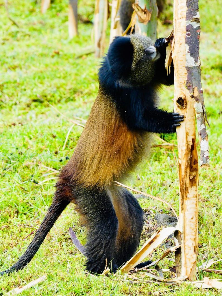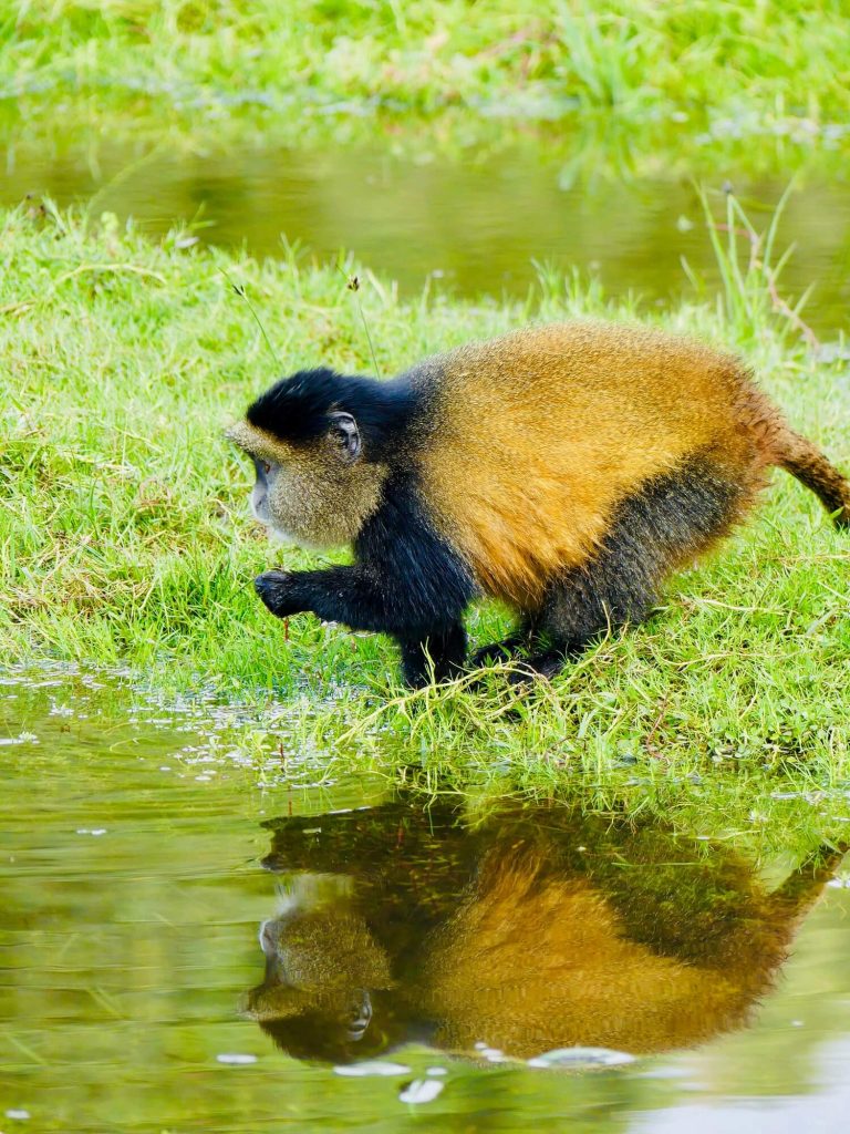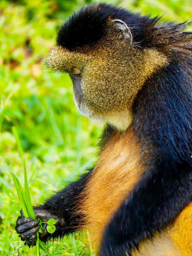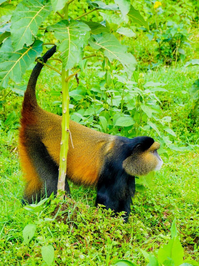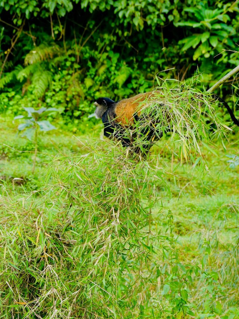 Aux côtés des impressionnants gorilles de montagne, le Parc National des Volcans abrite une autre espèce, elle aussi menacée, de petits primates dont la visite m’a laissée un impérissable souvenir : les endémiques Golden Monkeys, reconnaissables à leurs joues et pelage dorés.
