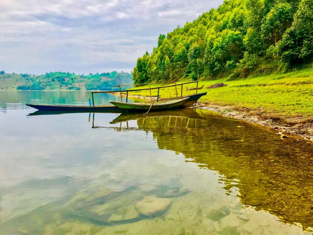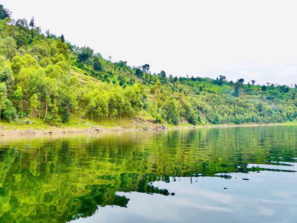 Nés d’une éruption du Muhabura, volcan à présent dormant, les lacs Ruhendo (plus petit) et Burera (plus grand et situé davantage en altitude), qu’un mince bout de terre relie, se déploient, en effet, avec grâce au pied du Parc National des Volcans.