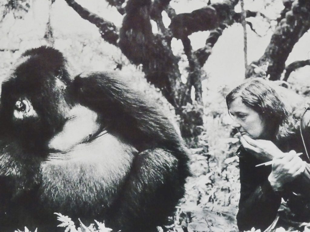 Femme d’exception qui, de la fin des années 60, où elle établit, à  3000 mètres d’altitude, son camp de recherche, Karisoke, entre les volcans Bisoke et Karisimbi, à son assassinat en 1985, ne cessa d’alerter l’opinion publique sur la nécessité d’assurer la préservation desdits primates.
