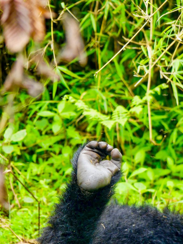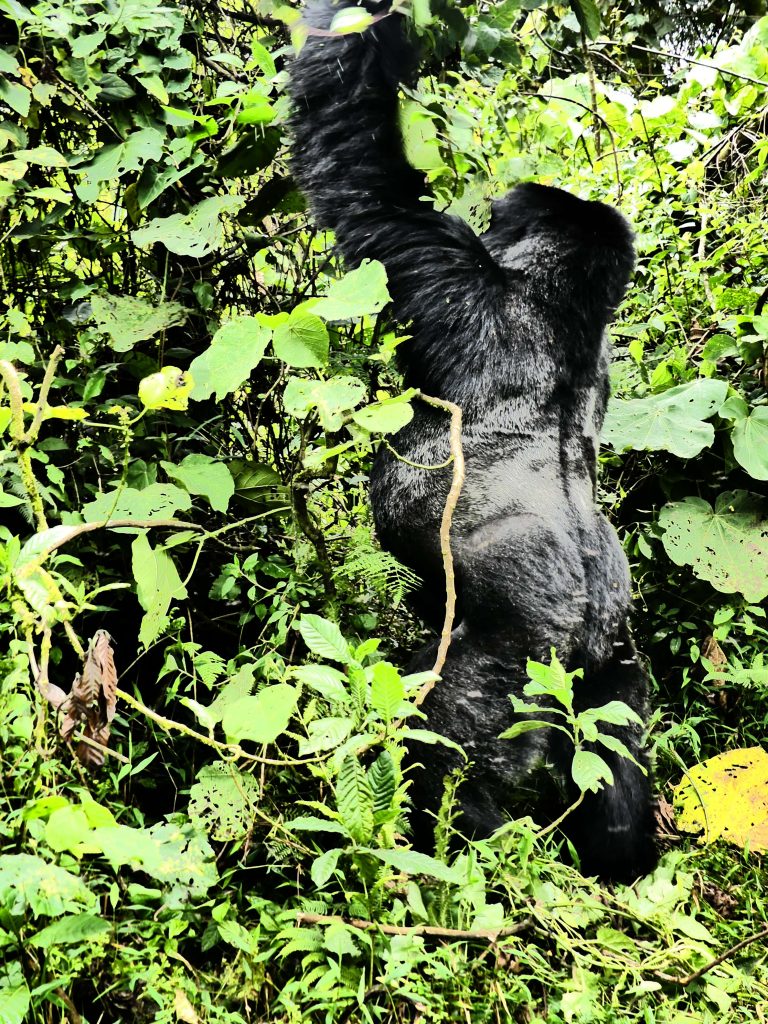 Pentes abruptes, végétation dense, nombreuses pierres, sols par endroits boueux et glissants, cours d’eau à franchir, chemins à dégager et gorilles se déplaçant très rapidement :  les deux heures de marche avant de les atteindre furent, nonobstant la somptuosité des paysages traversés , très loin de s’apparenter à une simple promenade de santé.