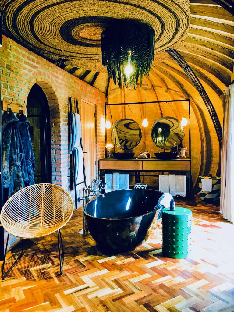 Autant d’inoubliables panoramas avec lesquels l’architecture et le design particulièrement léché du Bisate Lodge, conçus par le cabinet d’architectes Nick Plewman en concertation, notamment, avec Téta Isibo, fondatrice de la marque rwandaise Inzuki Designs, viennent contre toute attente rivaliser de beauté :