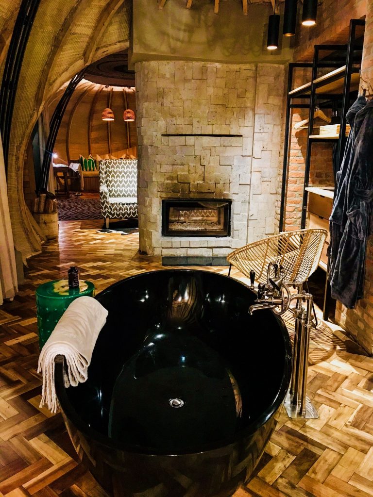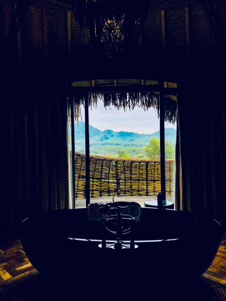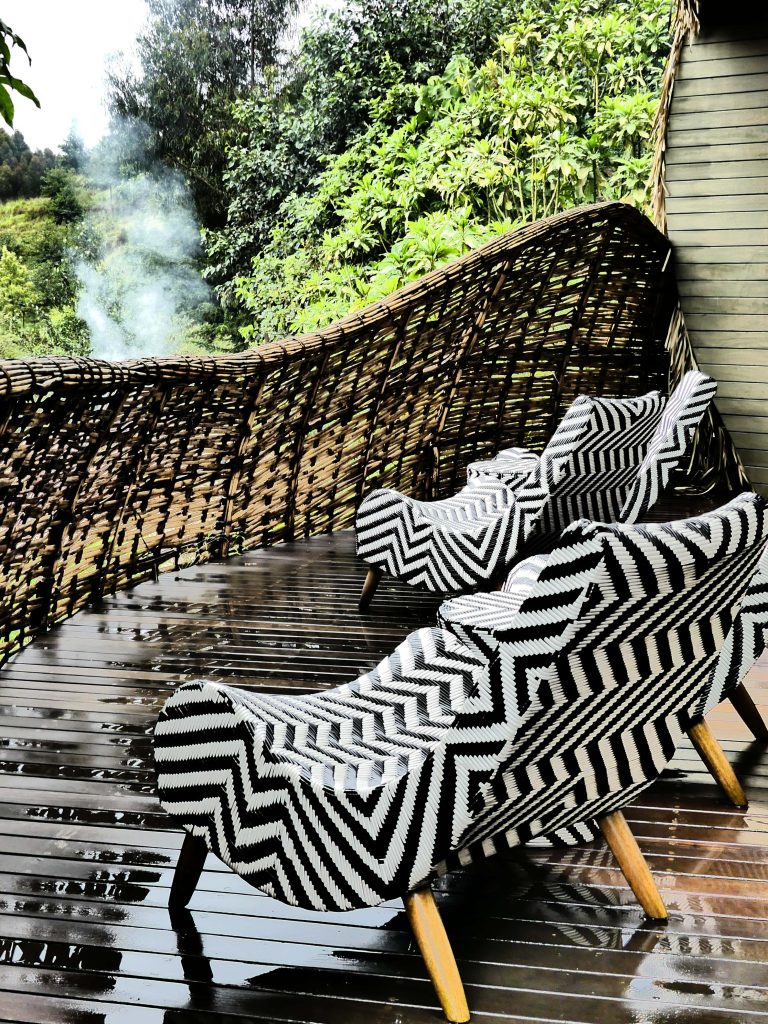 Dans cet idyllique cadre où mes sensations furent instantanément démultipliées, assister au coucher du soleil, être réveillée aux aurores par le chant des oiseaux, admirer les sommets du massif des Virungas se dessinant à l’horizon, m’extasier devant le feu crépitant dans l’âtre de la cheminée en pierres volcaniques et me blottir dans les draps où une bouillotte avait au préalable été délicatement glissée prit, donc, une tout autre dimension.