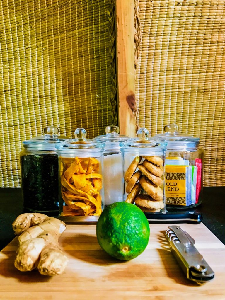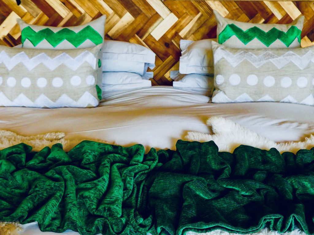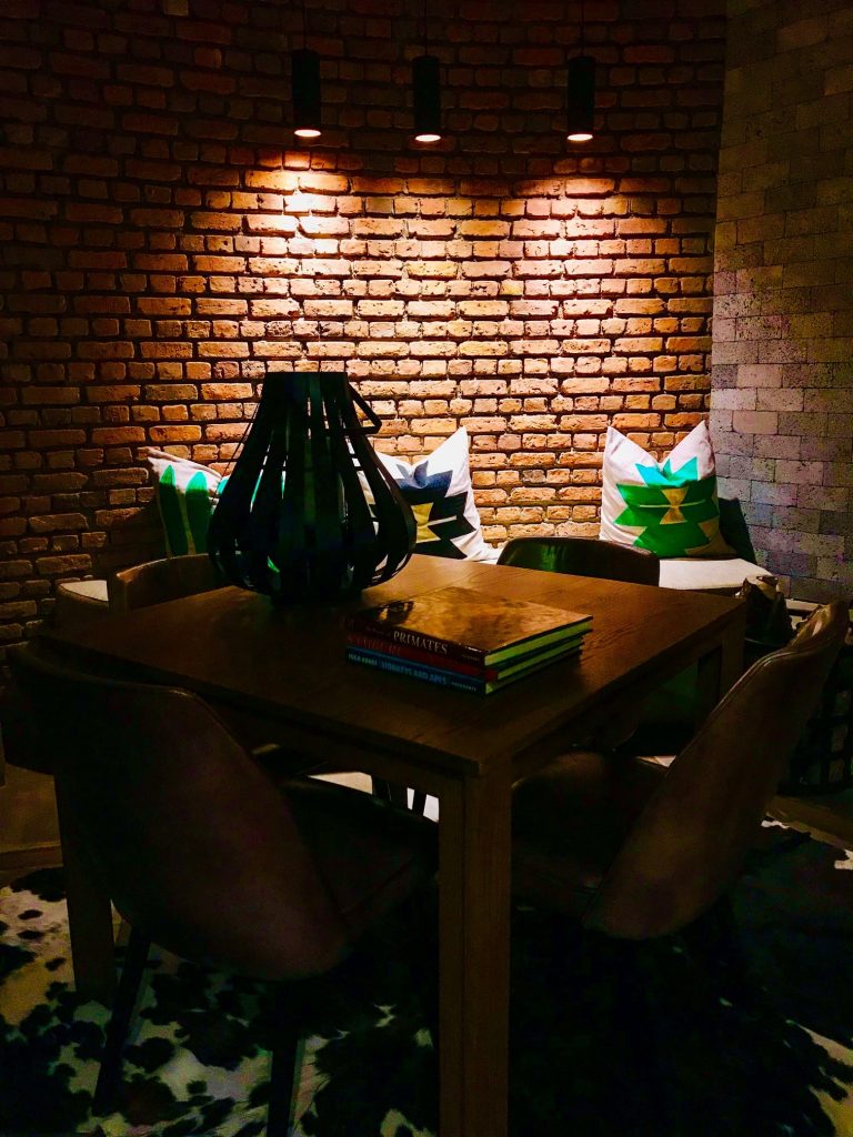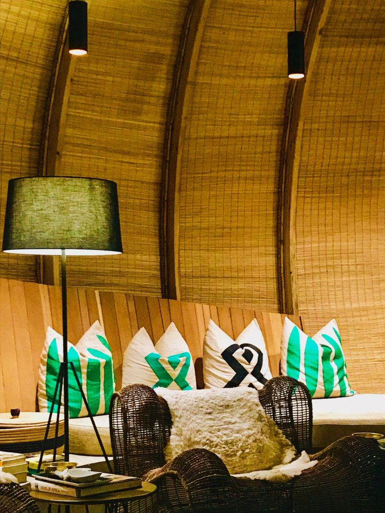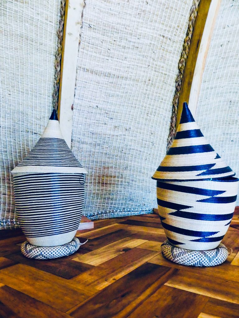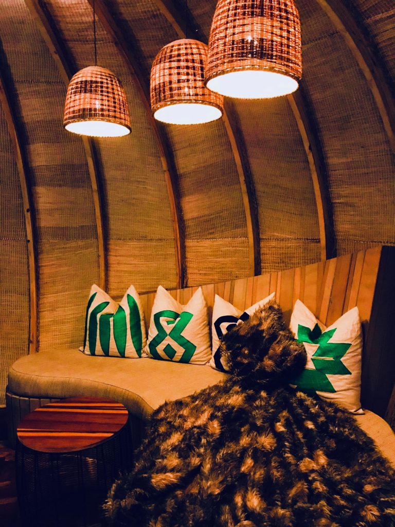 le recours aux motifs imigongo sur les coussins, la présence de mur en briques ou, encore, l’usage de cruches à lait typiques en guise d’élément décoratif .