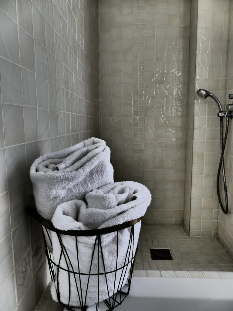 De l’autre côté du duplex, l’élégance de la salle de bain, au design épuré, se traduit, notamment, dans sa taille, sa baignoire-îlot, sa douche italienne et la luminosité l’inondant.