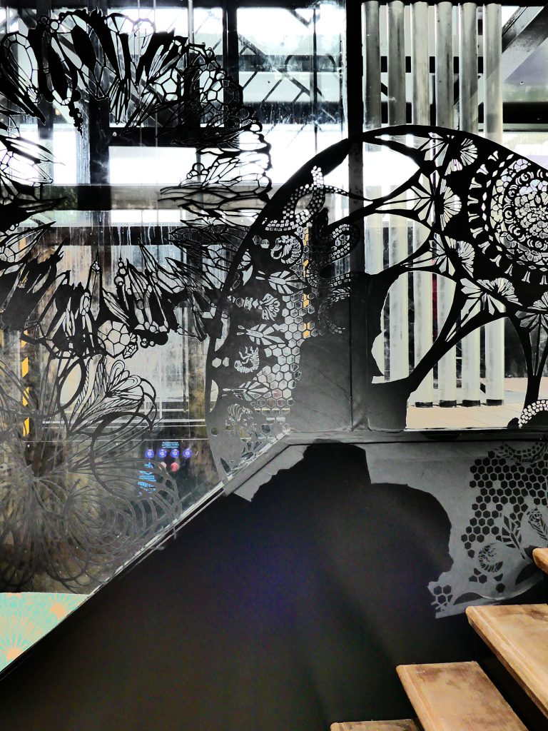 oeuvre d’Erell réalisée sur les façades extérieures de Fluctuart