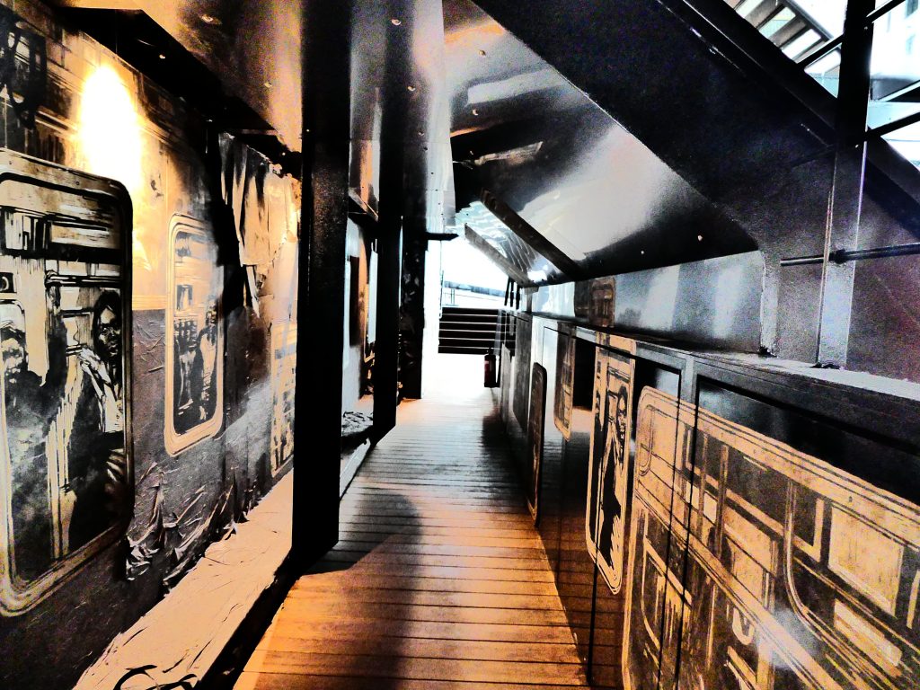 Nichée en dessous du pont principal, la cale accueille, quant à elle, les expositions temporaires, s’articulant autour d’un thème ou d’une monographie.