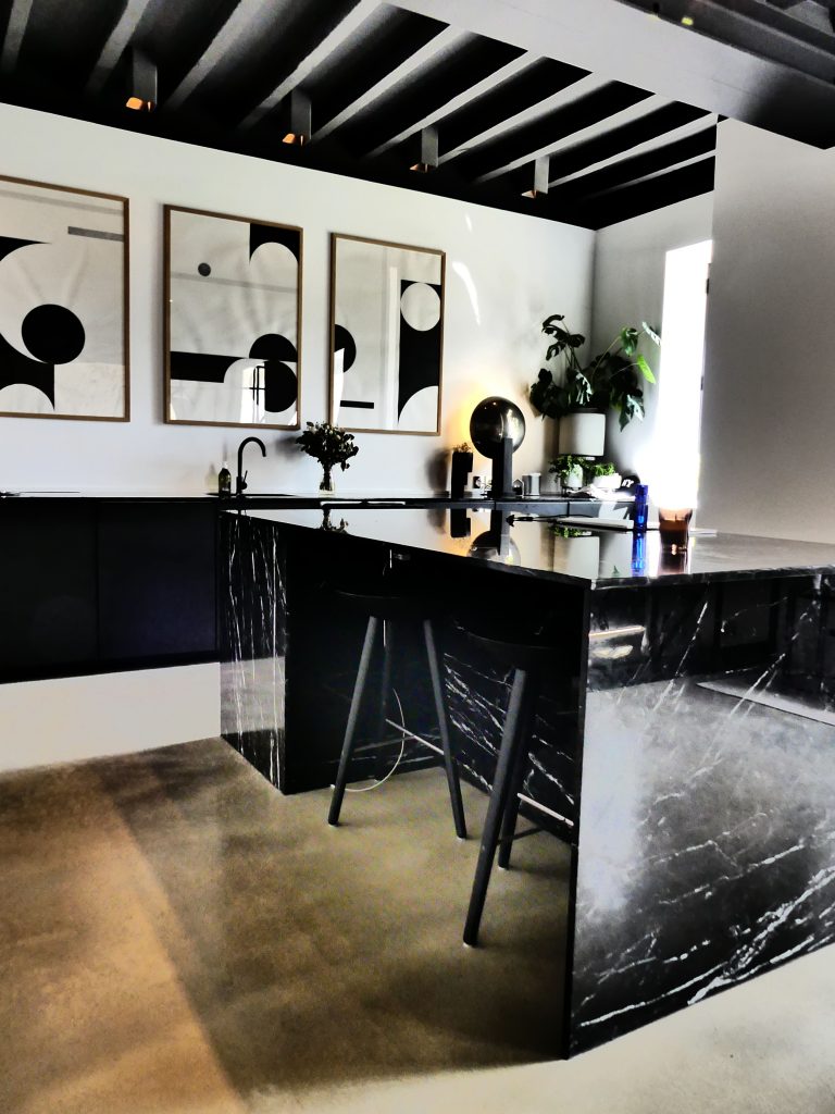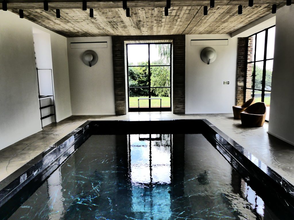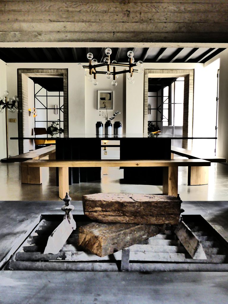 On mesure toute l’acuité du recours à des matériaux, tels le béton, l’acier, le bois et le magnifique marbre noir Marquina, qui, aux côtés des originelles poutres en bois, pierres et briques, participent à présent du caractère chic et épuré des espaces;