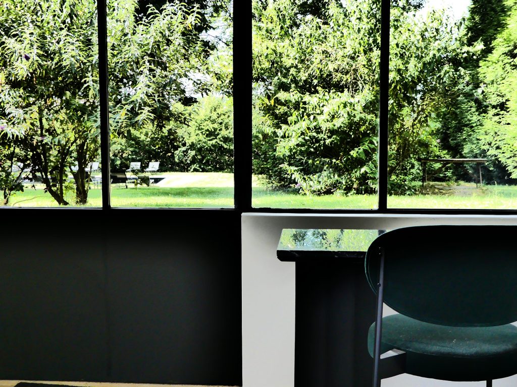 j’ai donc découvert un cocon design avec mezzanine, baigné de lumière, doté, de surcroît, d’une petite terrasse s’ouvrant sur la Nature