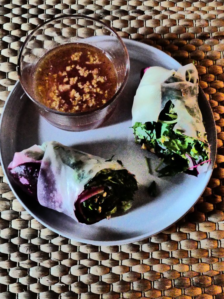 rouleaux printaniers comté-betterave & sauce à l’huile de noisette