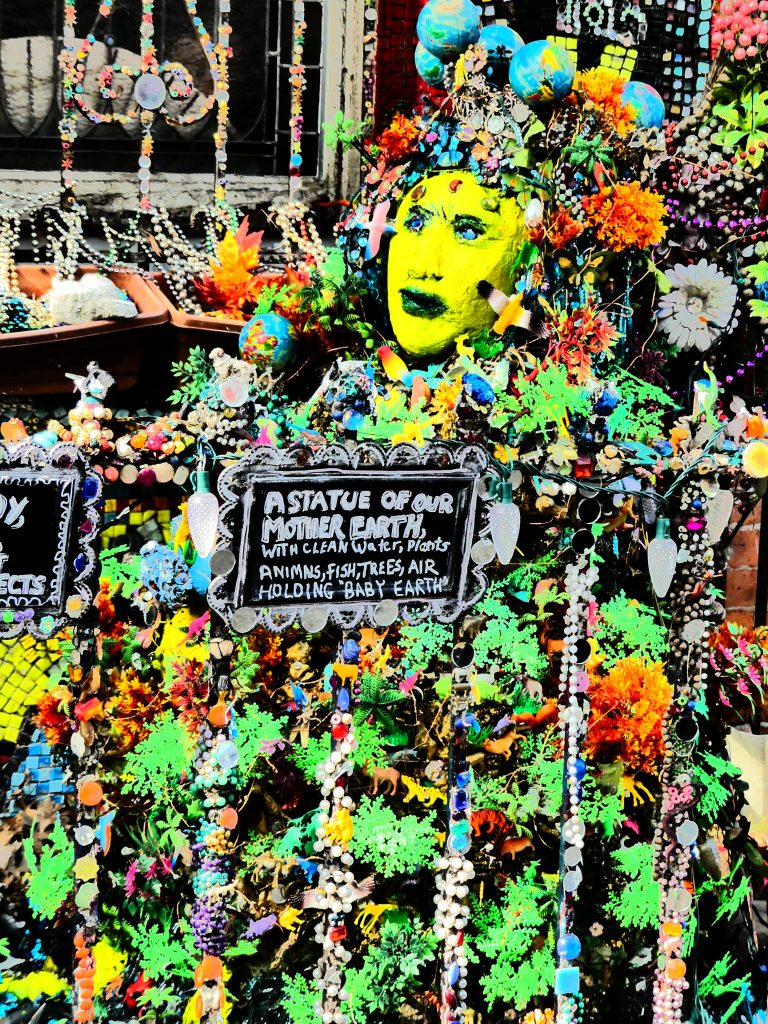 Rappelant à la fois les constructions de l’architecte espagnol Antonio Gaudi et du postier français, s’étant mué en autodidacte bâtisseur, Facteur Cheval, le coloré édifice de la Wyckoff Street est une véritable ode à la vie, à la joie et à l’amour.