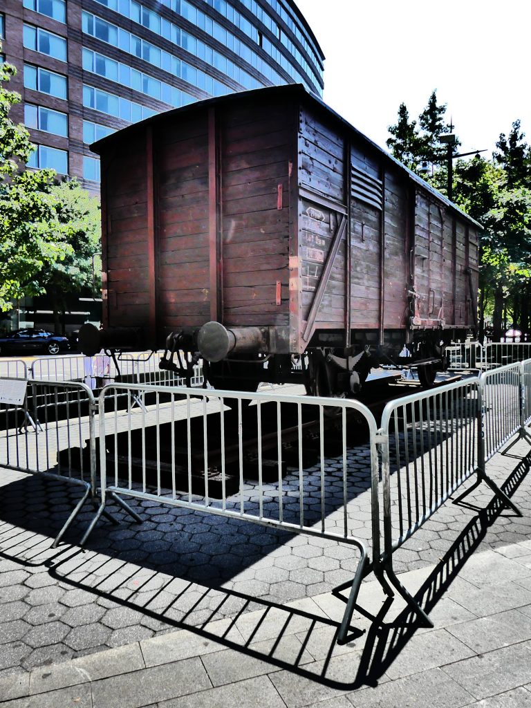 wagon original de marchandises de la compagnie ferroviaire allemande utilisé par les Nazis au cours de la seconde guerre mondiale pour déporter les populations juives , durant un trajet qui durait plusieurs jours, vers les camps de concentration et d’extermination .