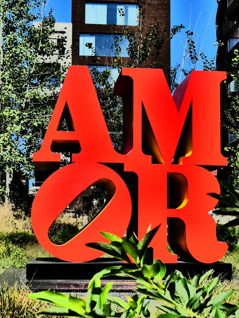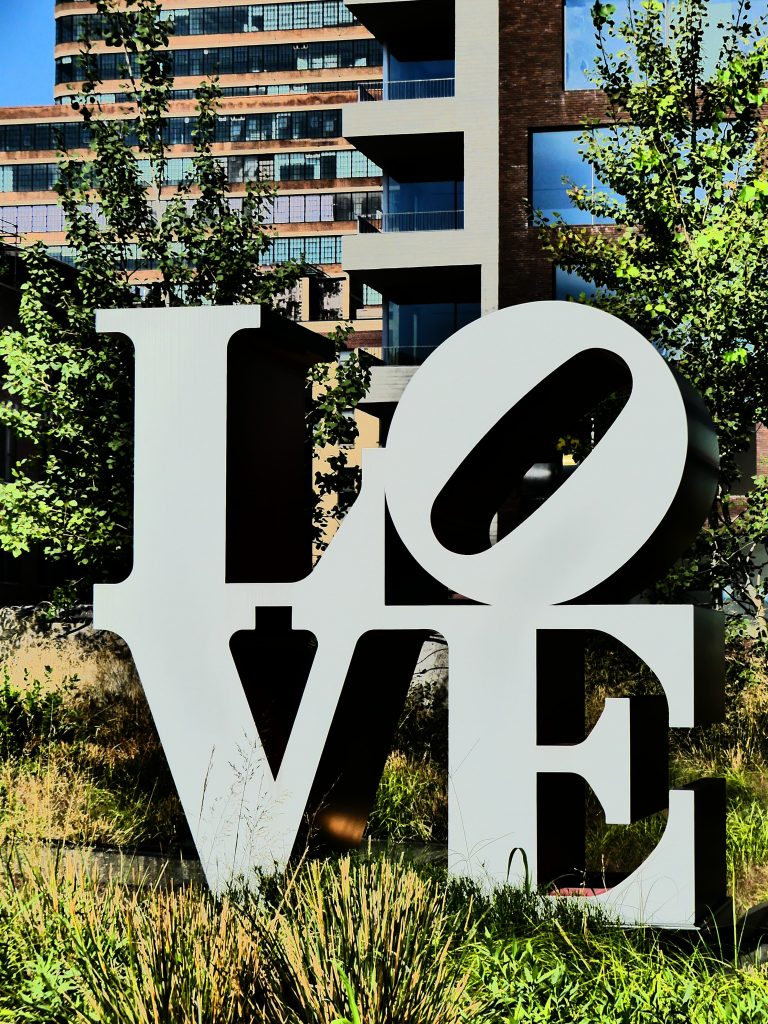 les emblématiques sculptures Love de Robert Indiana se déclinant, à présent, en 3 langues (anglais, espagnol et hébreu)