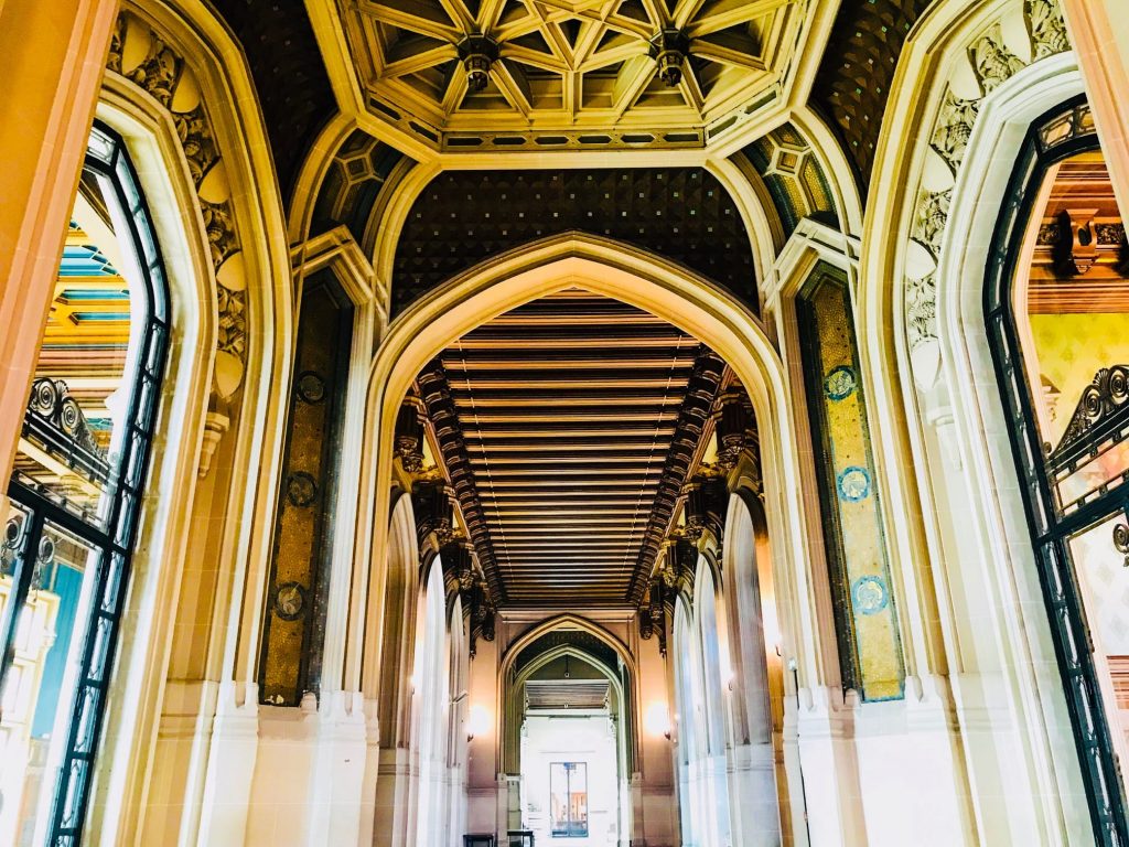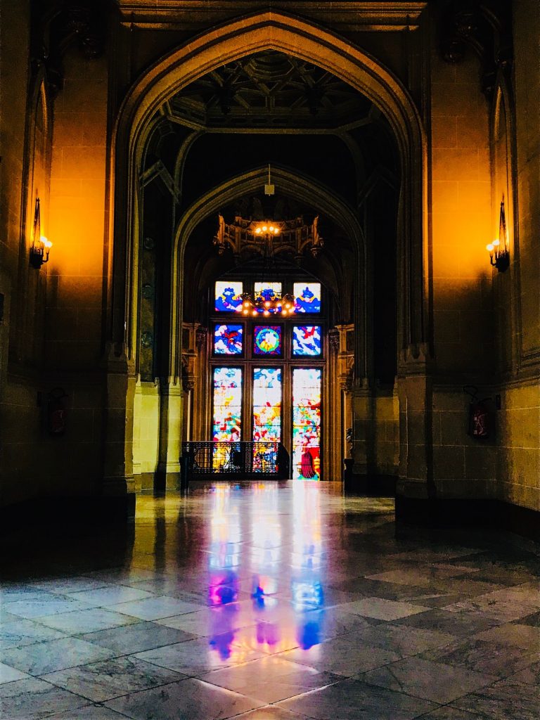 Mariant briques rouges, pierres blanches et béton armé; orné de superbes vitraux, évoquant le passé de Calais; possédant une incroyable verrière Art Déco; accueillant une très belle salle des mariages,