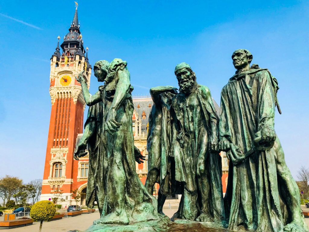 Commande publique faite par la municipalité ,à la fin du 19 ème siècle, à Auguste Rodin, Les Bourgeois de Calais, se dressant sur le parvis de l’Hotel de Ville,