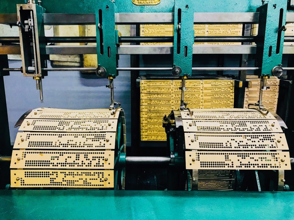 expositions temporaires et ouvriers spécialisés actionnant, lors de démonstrations, d’imposants métiers à tisser ,