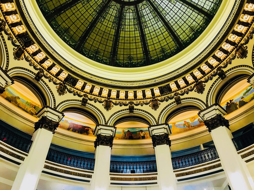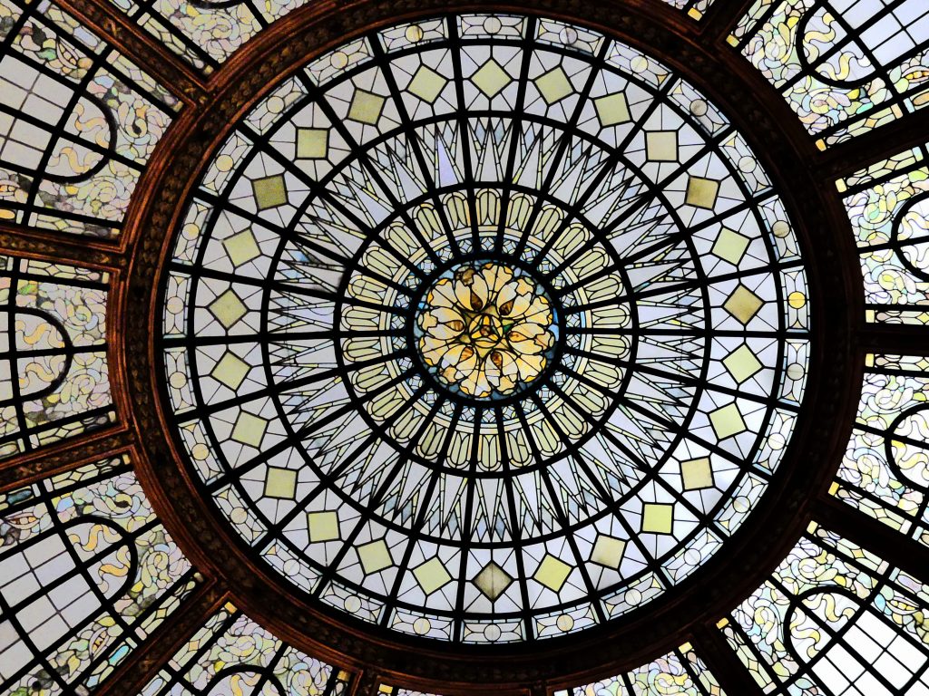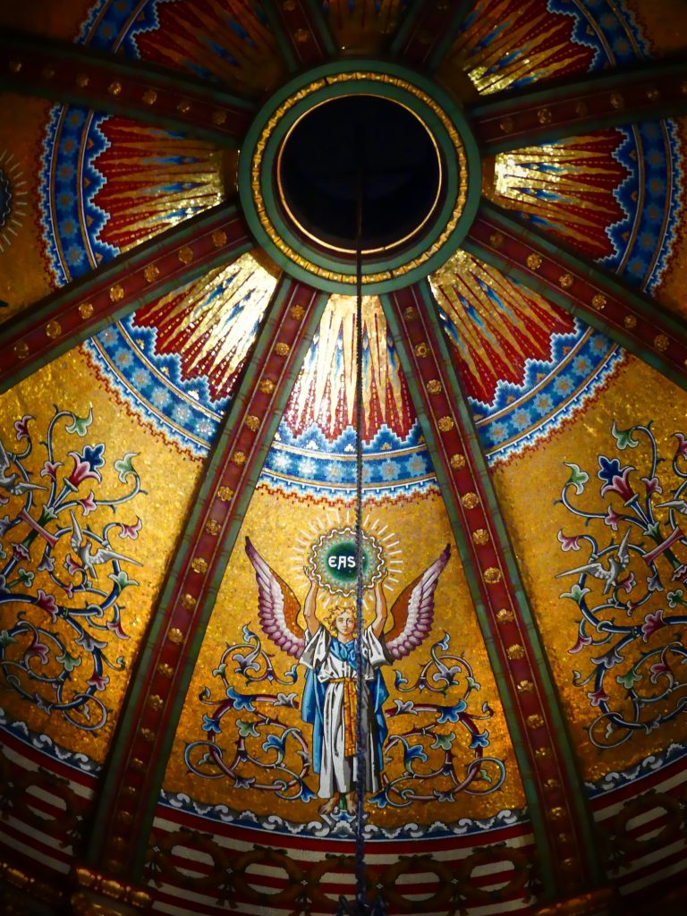 En témoignent : le fascinant dôme central recouvert de vitraux, les magnifiques fresques ornant les murs et la présence de balcons.