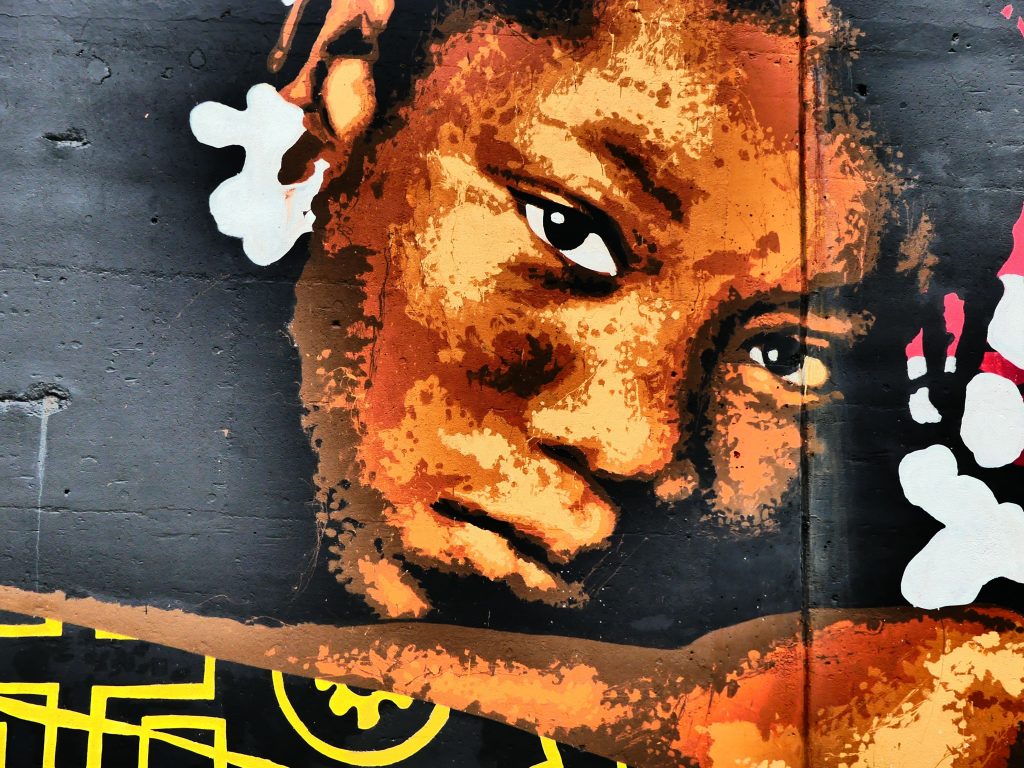 Quelques mètres plus loin, un gigantesque portrait, peint par Glen Infante, fait figure de double hommage.