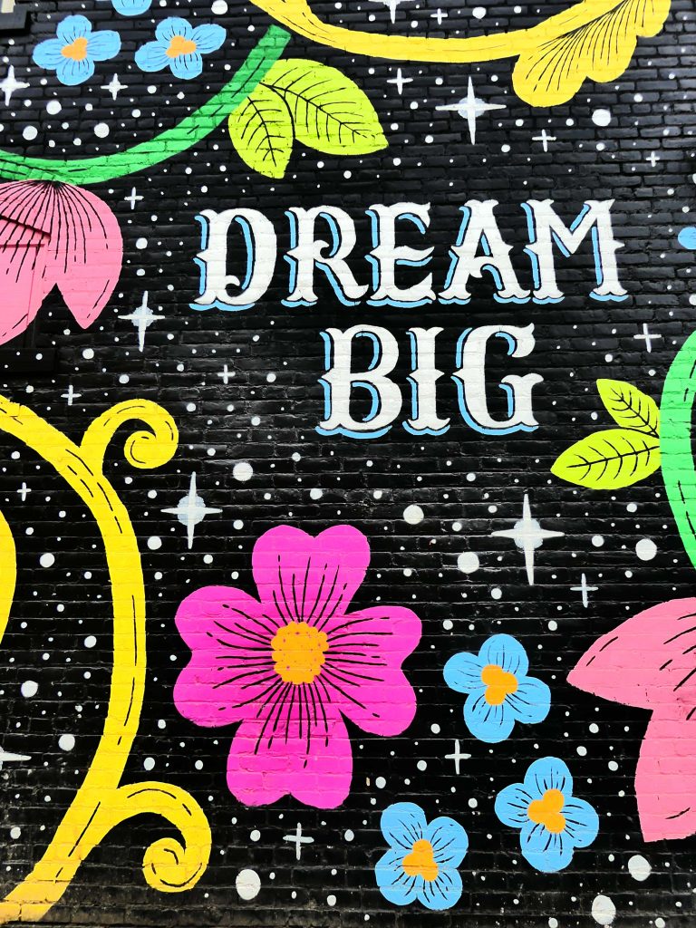 In fine, Dream Big, fresque de Lisa Quine visible dans le quartier périphérique de Gordon Square, mérite aussi, en ce qu’elle invite à rêver grand, le détour.