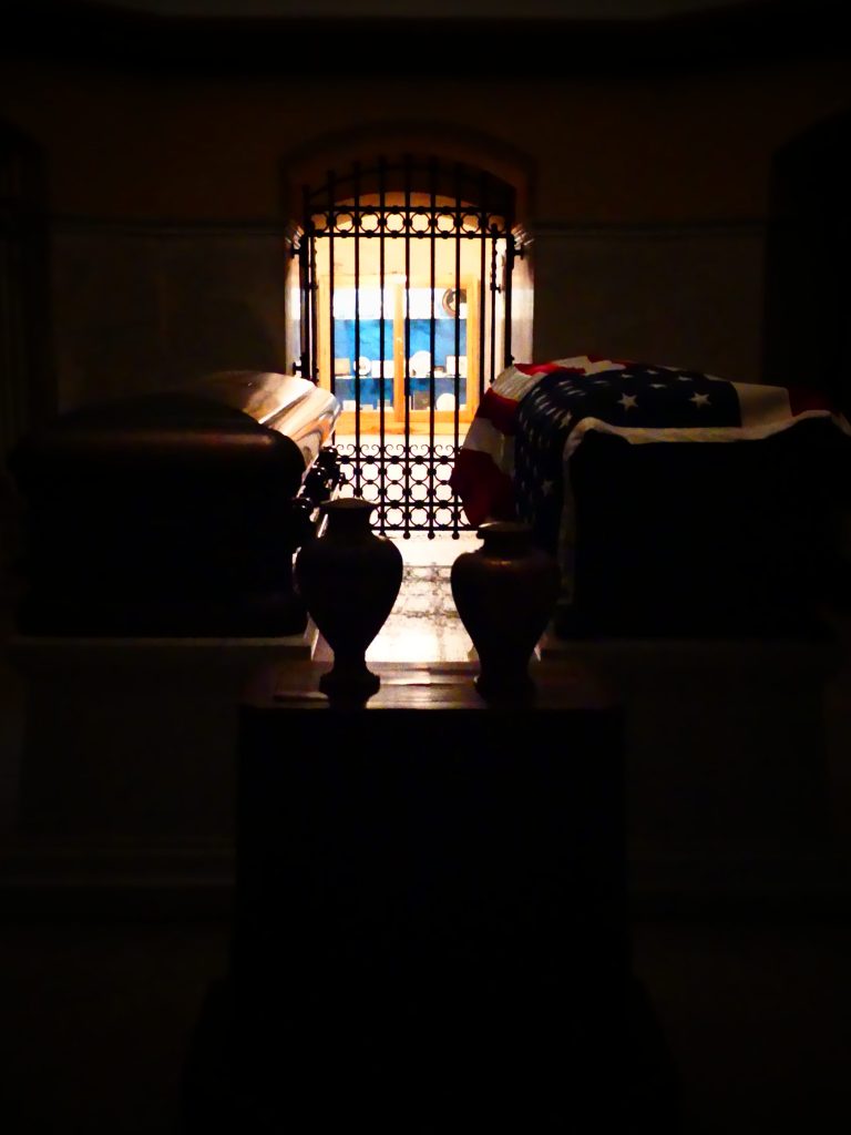 Un escalier mène ensuite à la crypte où sont exposés les cercueils de l’ancien président et de son épouse ainsi que les urnes contenant les cendres de leur fille et de leur gendre.