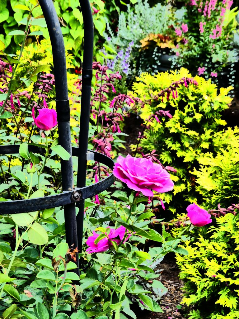 et s’achevant dans les serres aménagées à l’intérieur.