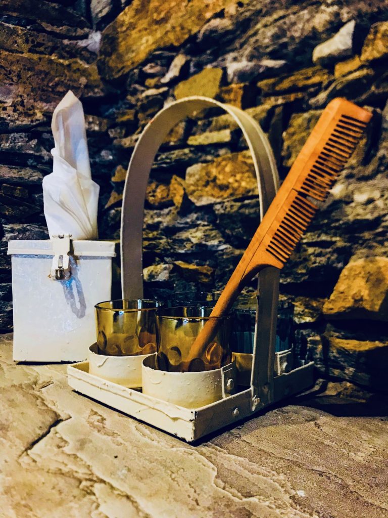 mobiliers créés à partir d’objets du quotidien recyclés, à l’instar des chandeliers faits d’ustensiles de cuisine ou des bidons d’huile métamorphosés en tables basses ,  traduisant, en effet, à la perfection cette ligne directrice.Â