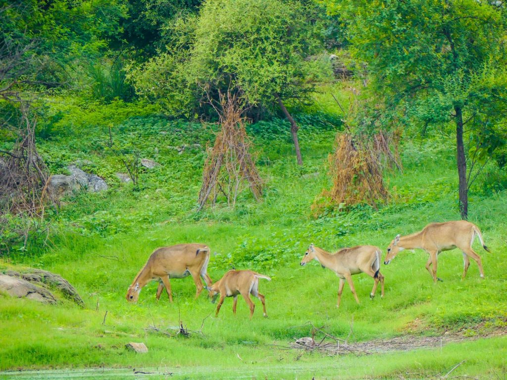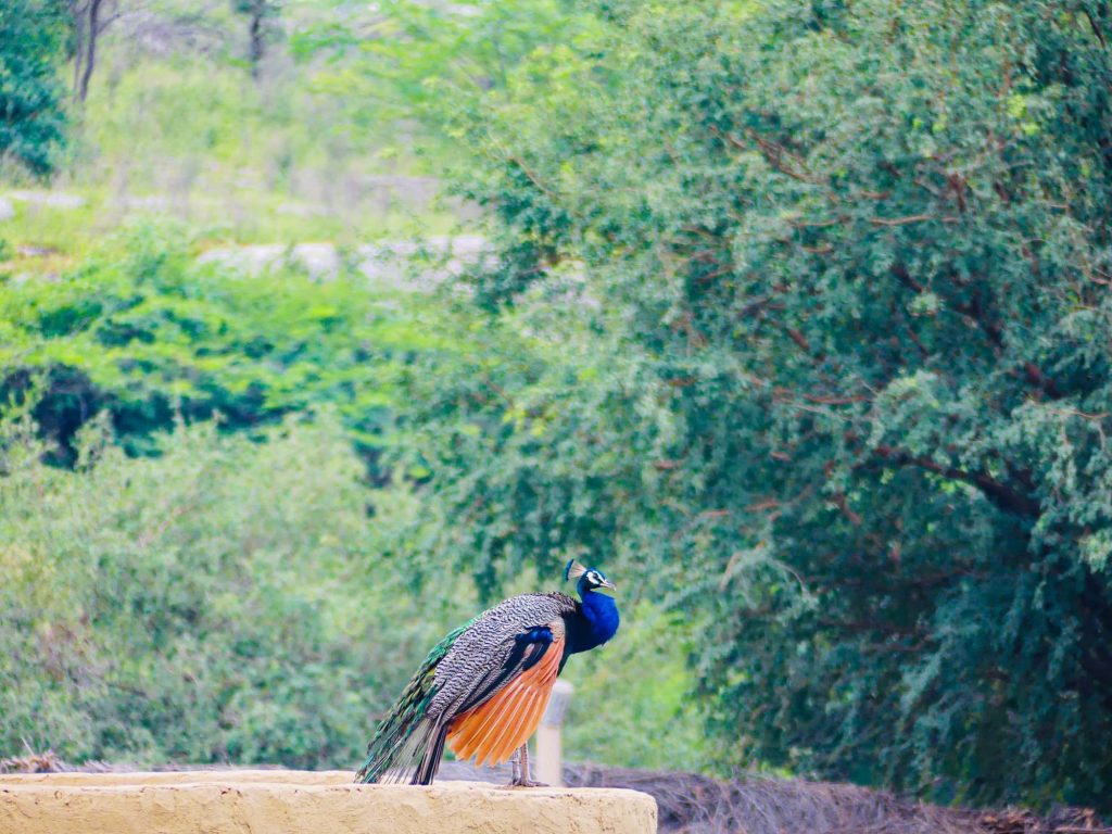 A la beauté du lac artificiel, lieu de rendez-vous des oiseaux, antilopes et paons ,