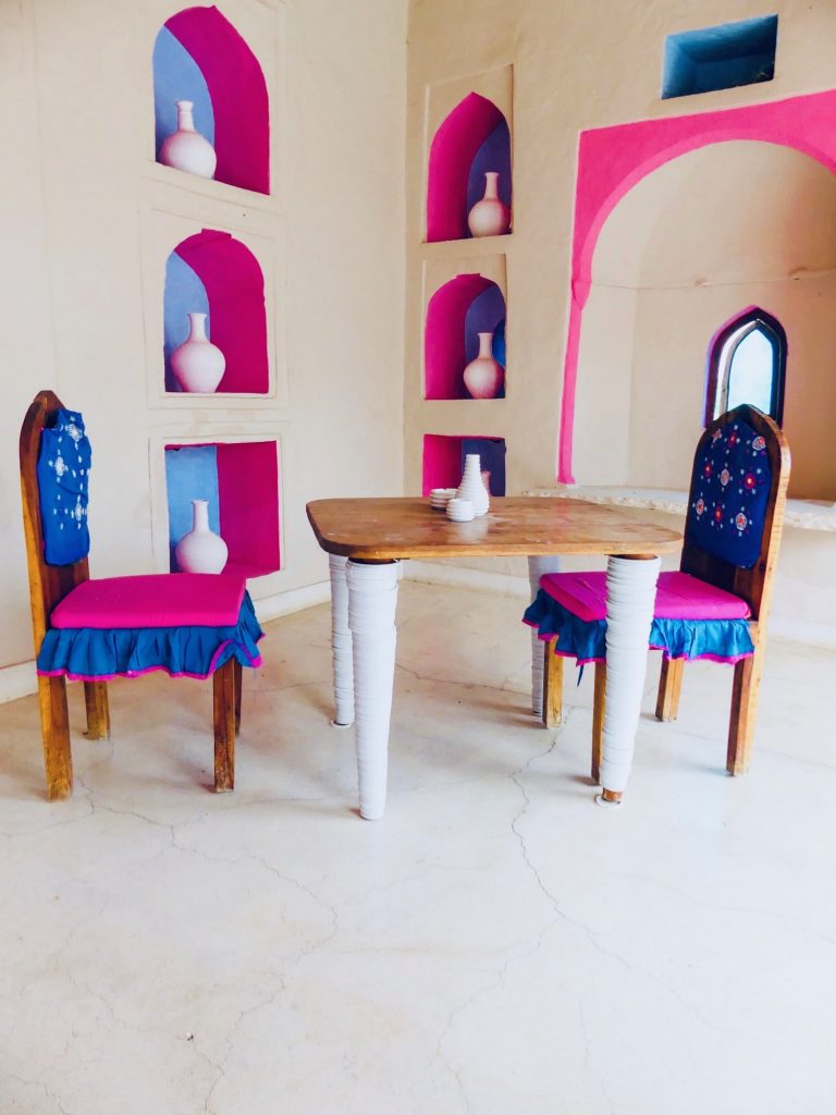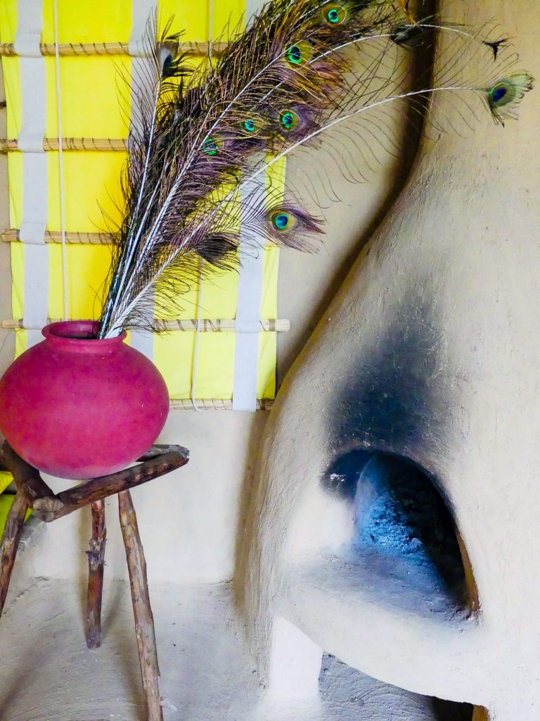 pièces traversantes; éléments décoratifs célébrant la culture régionale par le biais de poupées traditionnelles, chaussons, coussins, coffres, dabbas, tissus colorés , photographies, ouvrages laissés à dispositionÂ