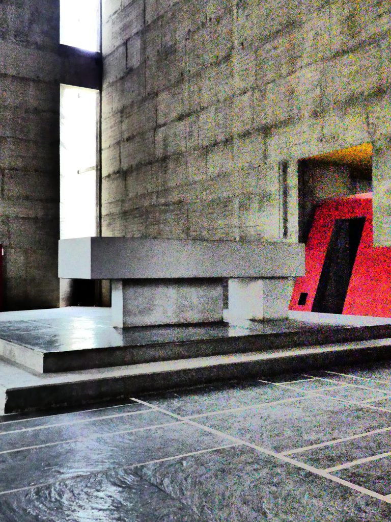 Puisque toute la singularité du couvent tient à sa capacité à conjuguer avec maestria spiritualité et esthétique inédite dont Le Corbusier avait, dès la fin des années 20, déjà défini les critères dans son manifeste des 5 Points de l’Architecture Moderne.