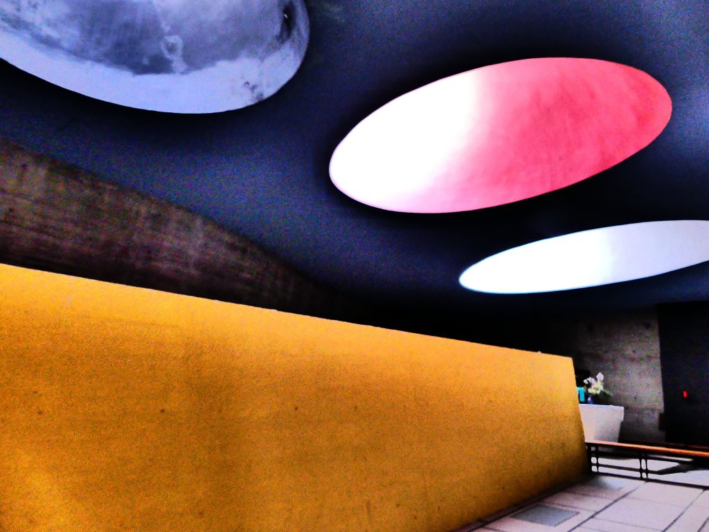 Outre de l’évident ancrage de l’art contemporain, tel un prolongement de la vision initialement exprimée par Le Corbusier, en ses murs.