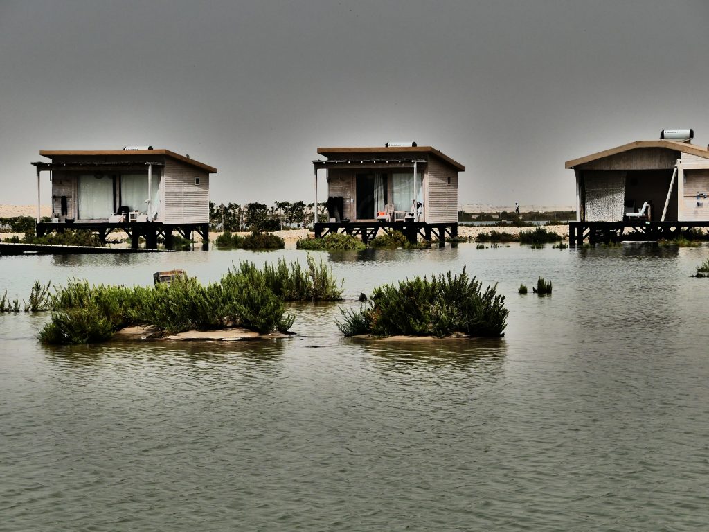 La construction, au pied de dunes sans cesse façonnées par le vent, d’une trentaine de bungalows en bois constituant l’écolodge