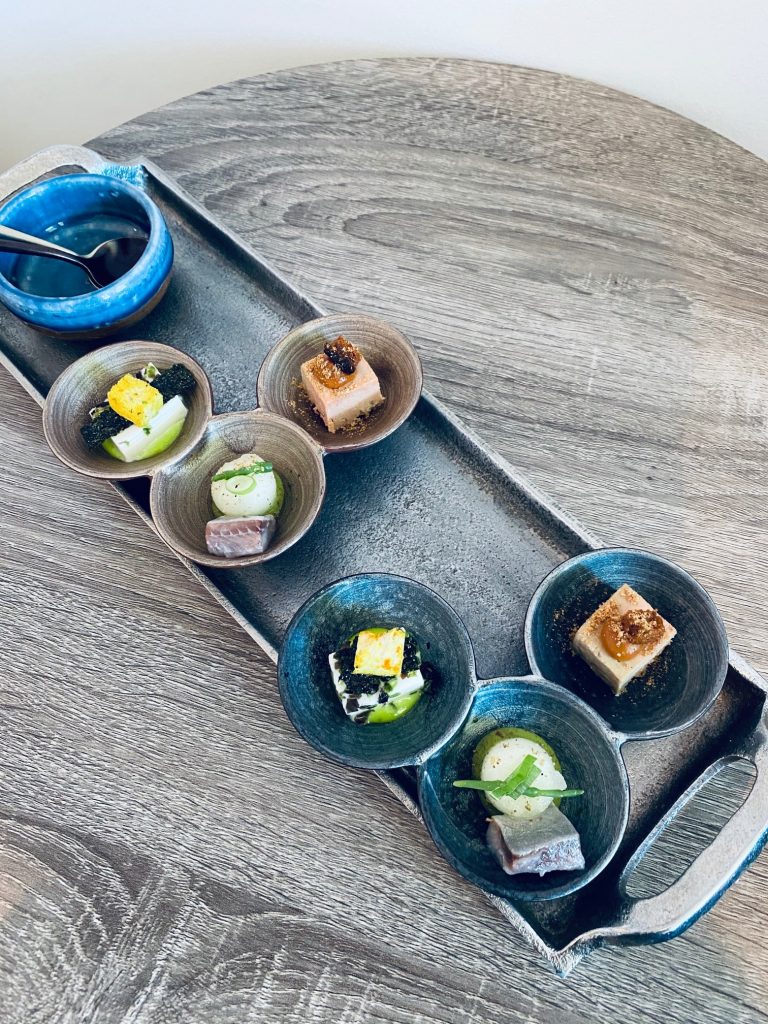 Tout, depuis les succulentes mises en bouche ( foie gras, concombre & hareng, tofu) servies au salon situé  à l’étage,