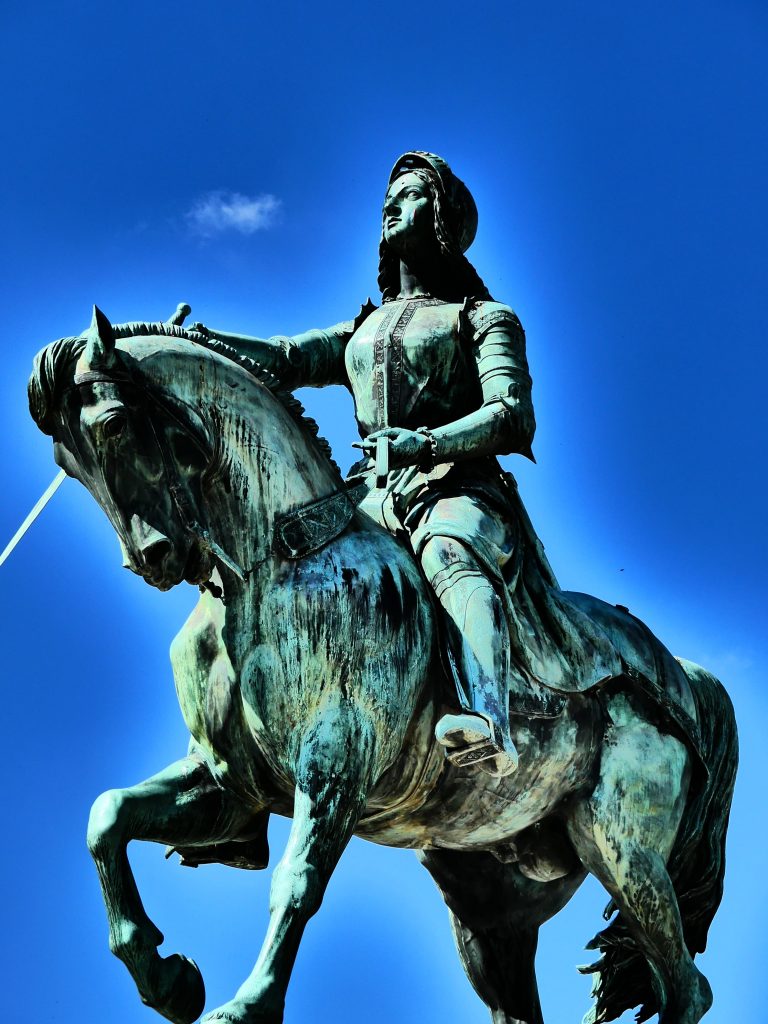 statue équestre en bronze représentant Jeanne d’Arc, oeuvre du sculpteur Denis Foyatier
