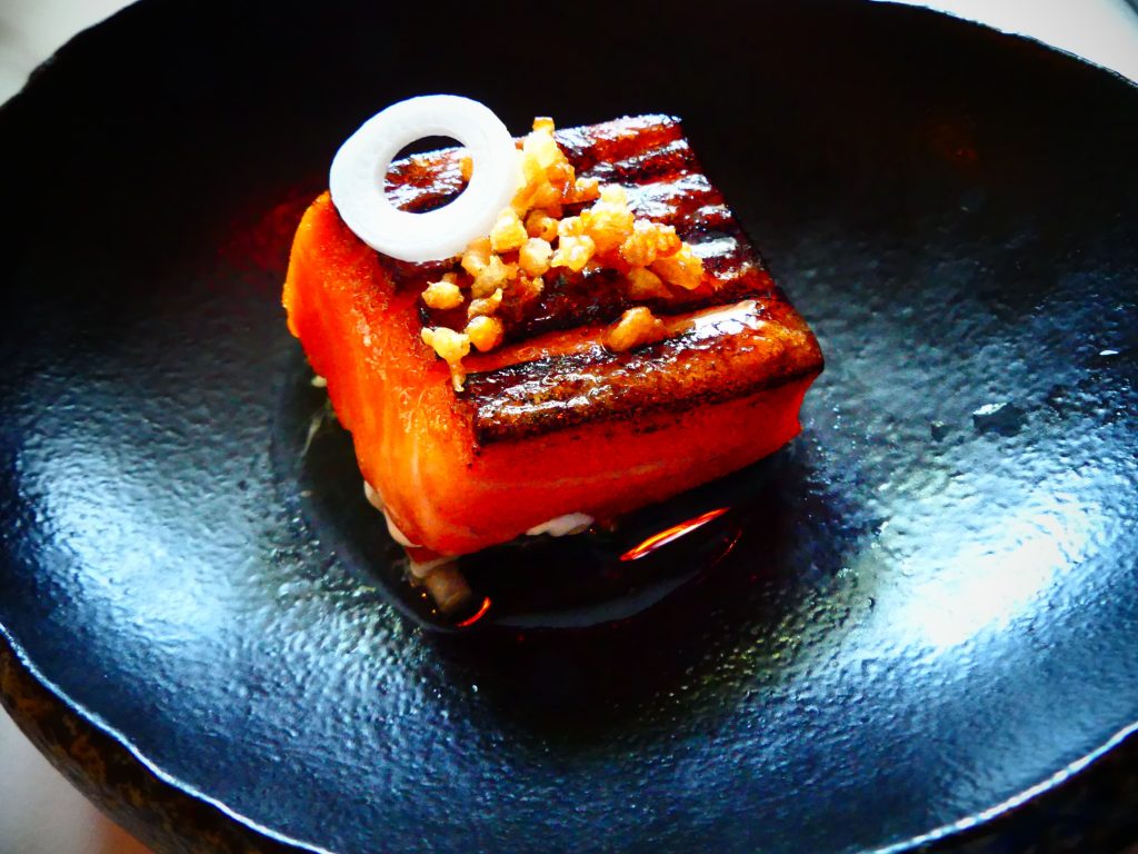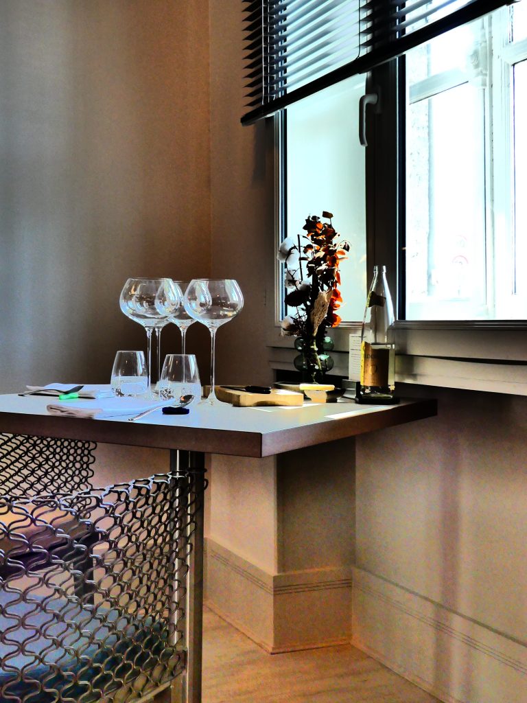 le délicieux pain maison et les exquis plats (oursin-panacotta de haddock; escargots-soba-ail noir; cochon miang kham; soufflé au litchi-sorbet thai ou encore perles du japon-coco-céleri) dont on se régale ensuite au restaurant aménagé au rez-de-chaussée,