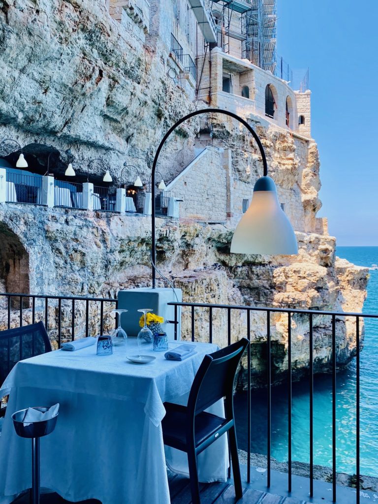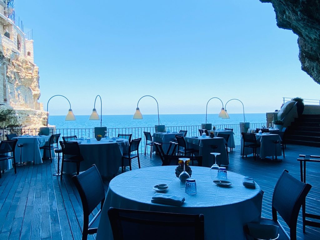 Jouissant de spectaculaires points de vue sur la mer Adriatique, l’aussi exclusif que romantique Grotta Palazzese Restaurant