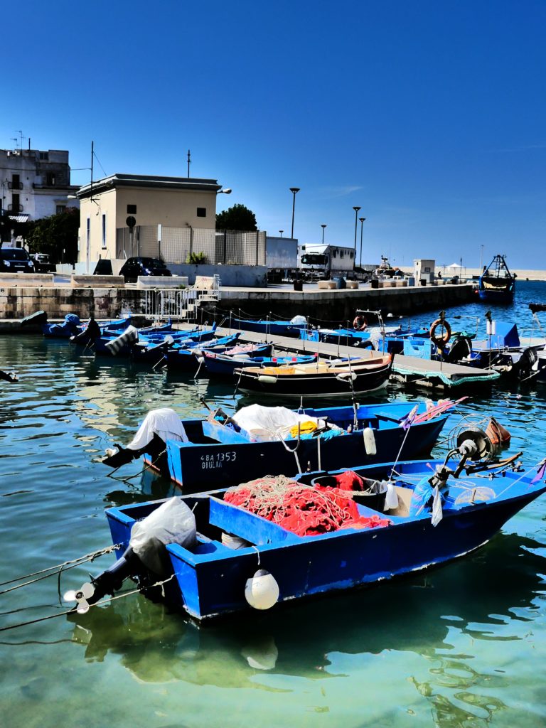 Si ses fortifications, son château, ses églises, ses ruelles, ses places, ses palais, ses maisons blanches aux volets colorés et ses plages témoignent de l’irrésistible charme qui est le sien, c’est en rejoignant son pittoresque petit port que Monopoli offre, à mon sens, son visage le plus envoûtant.
