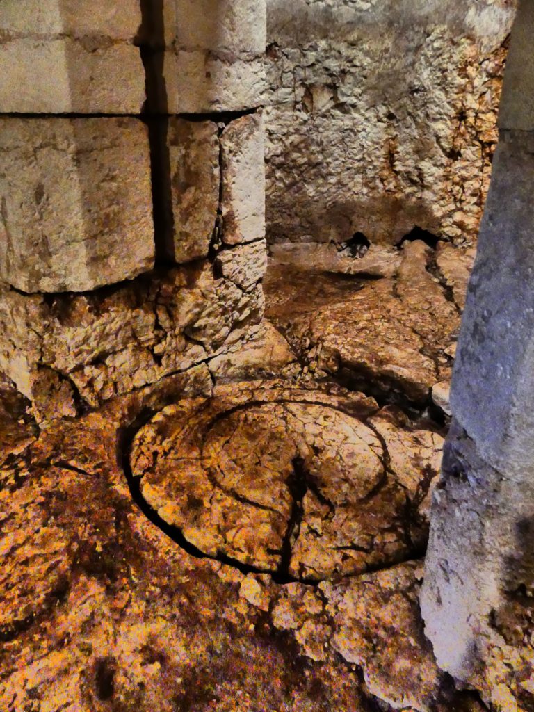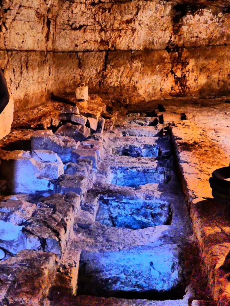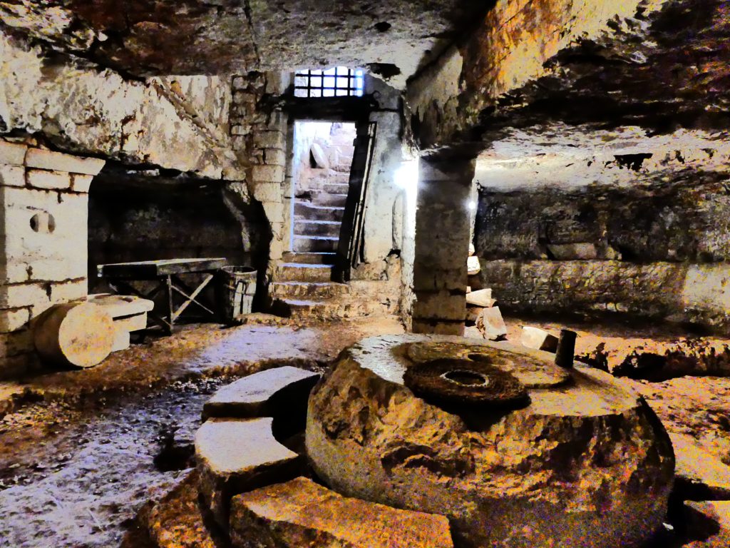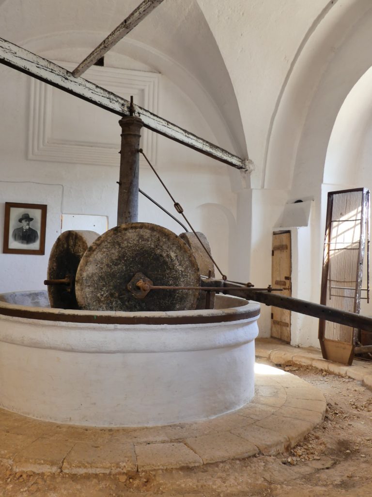 Faisant figure de véritable remontée dans le temps, l’exploration des lieux permet en outre de découvrir le fonctionnement d’un pressoir à huile, datant de l’époque Messapienne, construit dans une grotte aménagée au sous-sol,