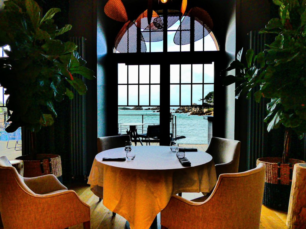 son restaurant gastronomique, doté de larges baies vitrées révélant le large