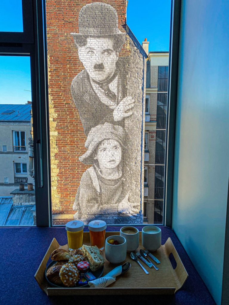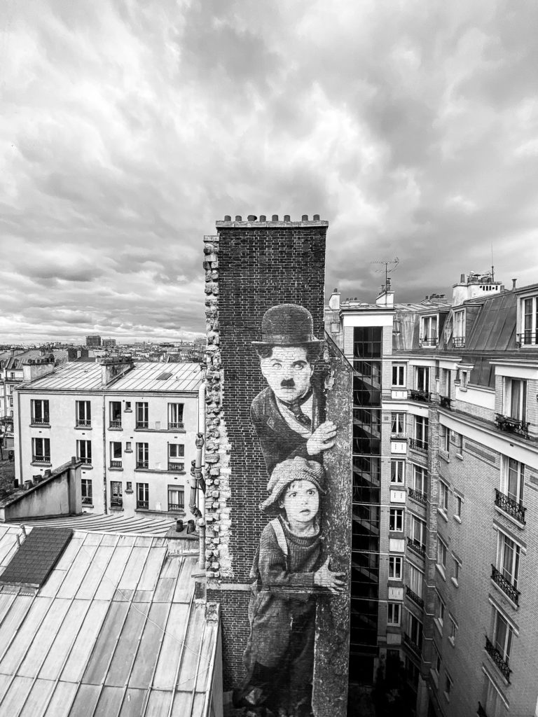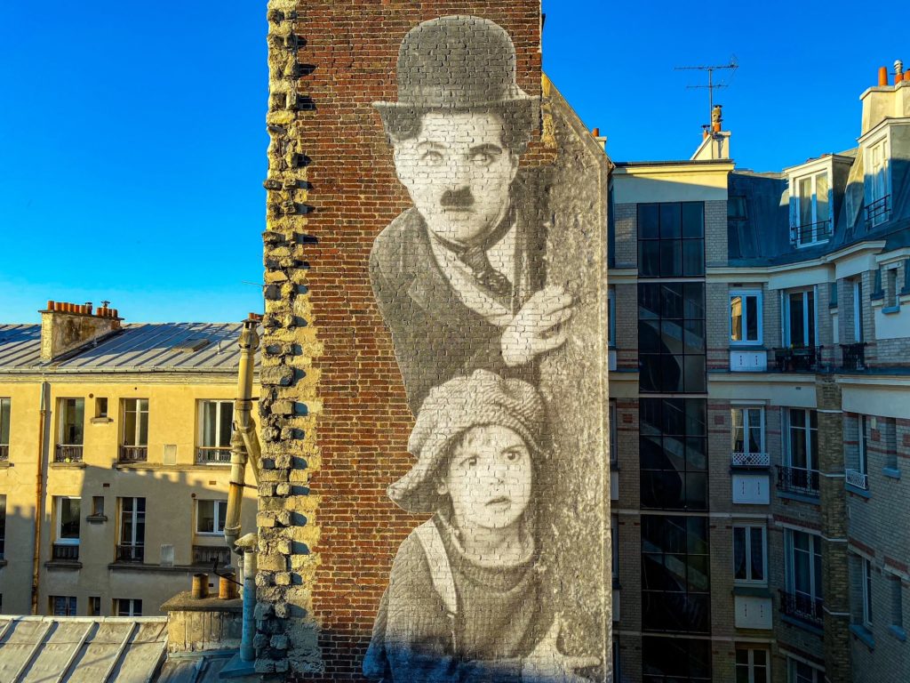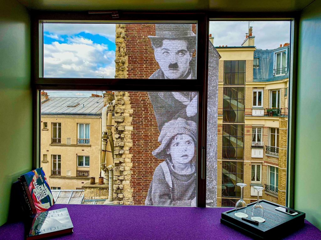 les autres, confidentiels collages, célébrant des monstres sacrés du cinéma muet des années 20, que l’on doit au street artiste JR, se dévoilent, a contrario, depuis les fenêtres des chambres situées côté cour.