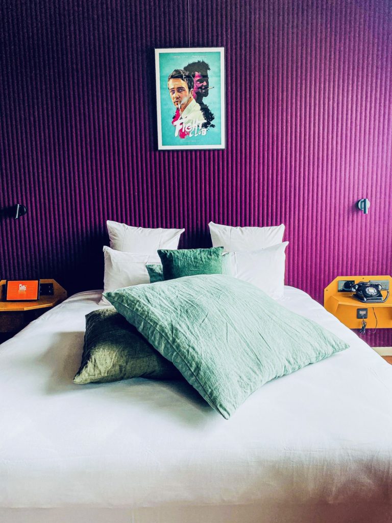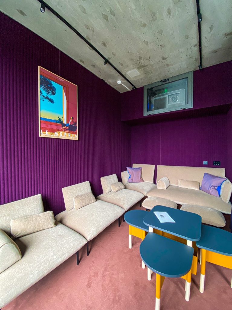 Avec les nombreuses affiches de films, pour certains produits ou coproduits par MK2, habillant les murs du Bob’s Café , du lobby, des escaliers reliant chaque étage, des couloirs outre des 36 cocons que compte l’hôtel.